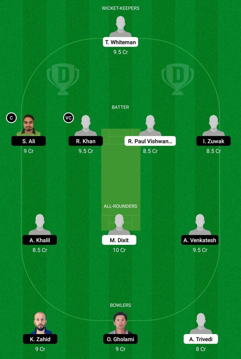 Fantasy Suggestion #1: Tony Whiteman, Share Ali, Rahel Khan, Roshan Paul Vishwanath, Imal Zuwak, Azham Khalil, Mohit Dixit, Abhijit Venkatesh, Khalid Ahmad Zahid, Oktai Gholami, Harpal Singh