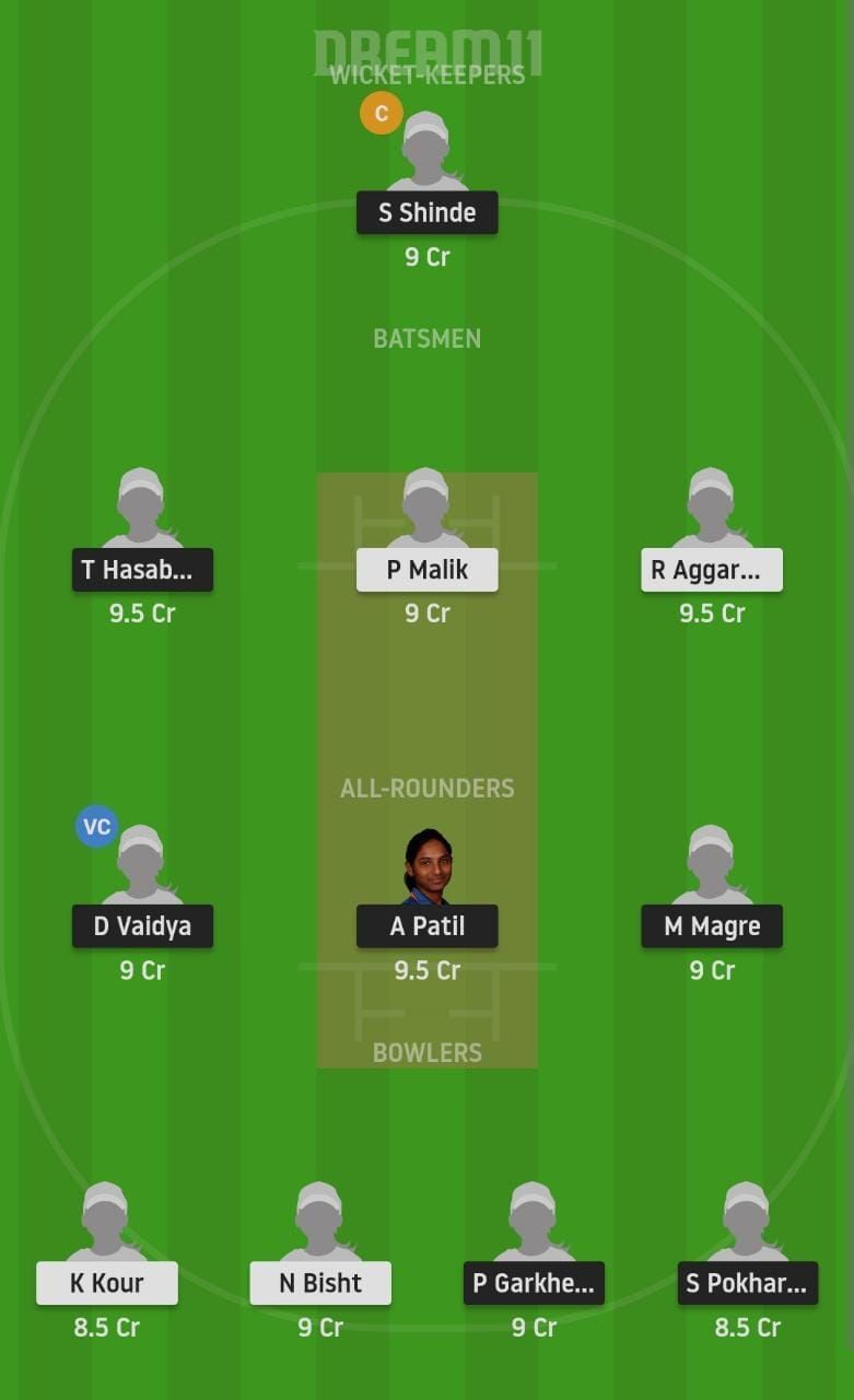 Fantasy Suggestion #1: S Shinde, T Hasabnis, R Aggarwal, P Malik, D Vaidya, M Magre, A Patil, S Pokharkar, P Garkhede, N Bisht, K Kour.