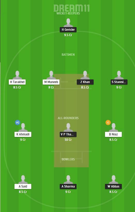 Fantasy Suggestion #1: Heinrich Gericke, Hadisullah Tarakhel, Samuel Mangat Stanislaus, Zeeshan Khan, Muhammad Muneeb, Khalid Ahmadi, Burhan Niaz, Varun Thamotharam, Ashiqullah Said, Washeem Abbas, Amar Sharma.