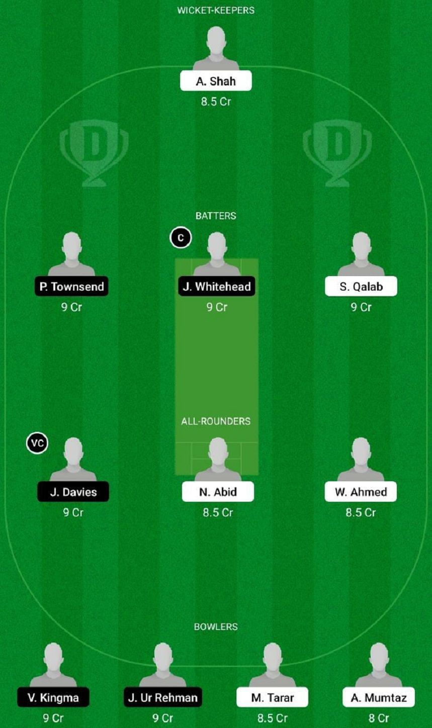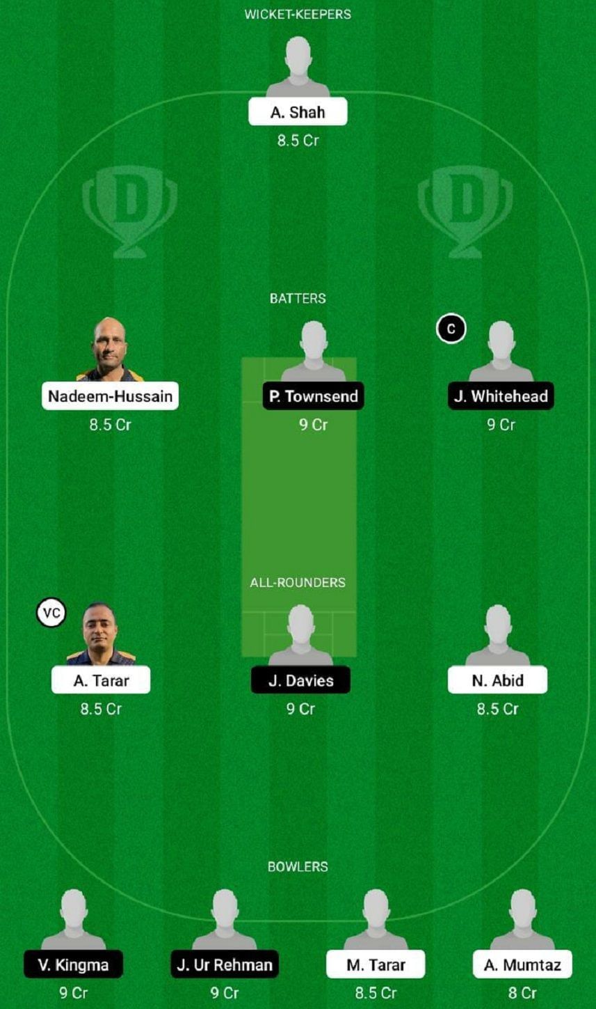 Fantasy Suggestion #1: A Shah, N Hussain, P Townsend, J Whitehead, A Tarar, J Davies, N Abid, V Kingma, J ur Rehman, M Tarar and A Mumtaz.