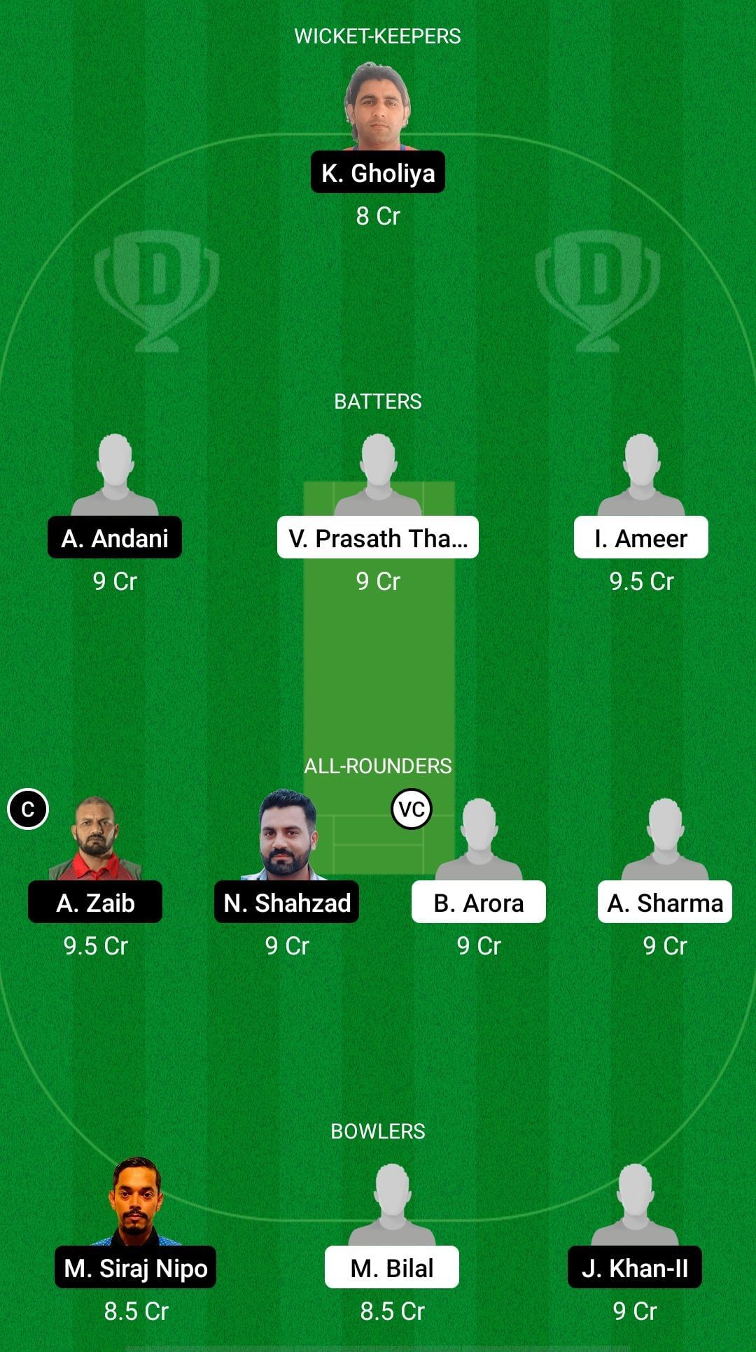 Fantasy Suggestion #1: Kuldeep Gholiya, Azher Andani, Varun Prasath Thamotharam, Gopal Chaturvedi, Amir Zaib, Najam Shahzad, Basil George, Bikram Arora, Mohammad Siraj Nipo, Muhammad Bilal, Waseem Abbas.