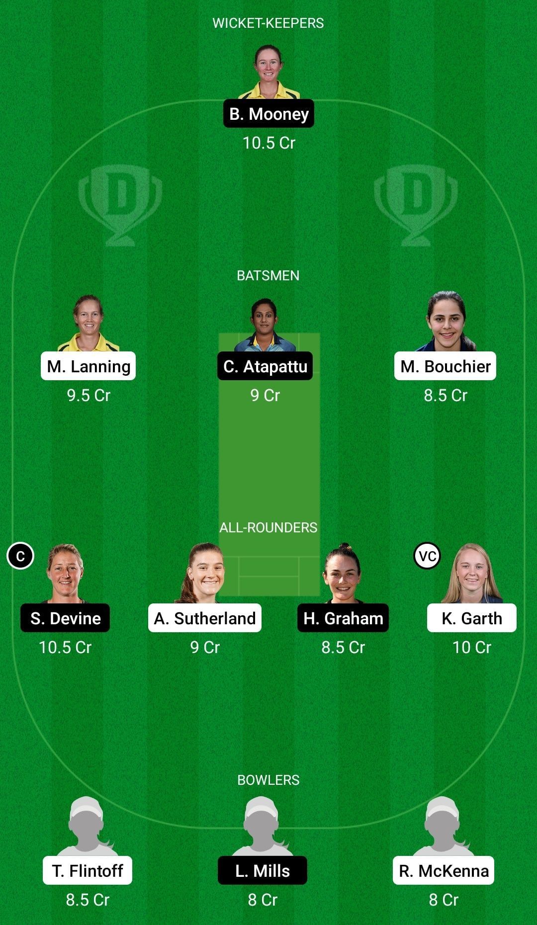 Captain: Sophie Devine. Vice-captain: Kim Garth