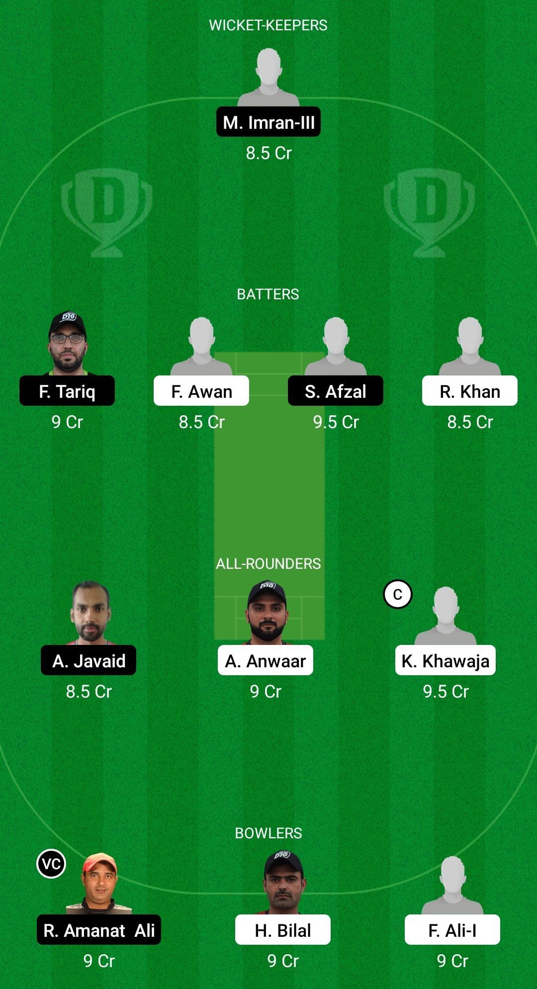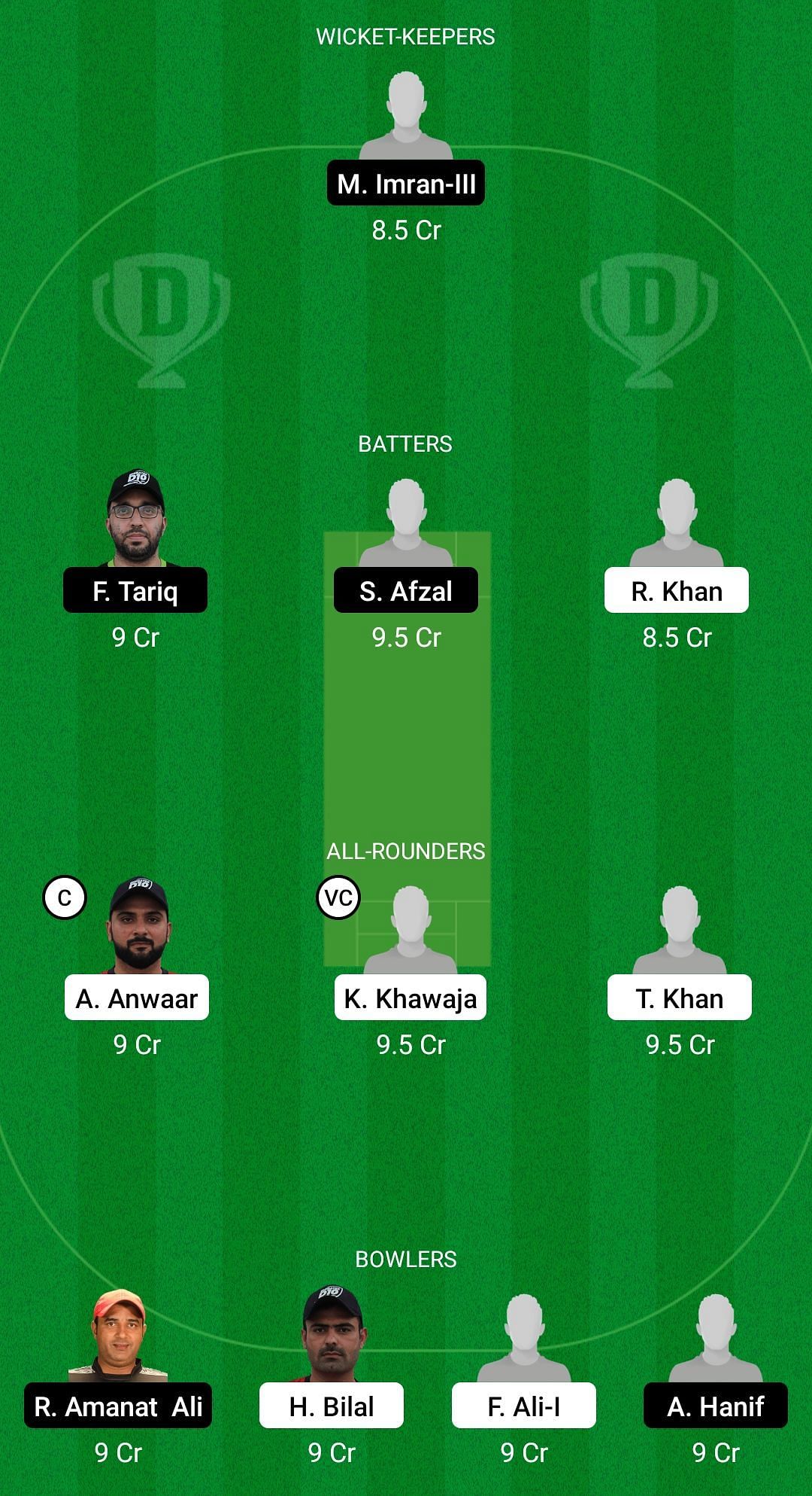 Captain: Ali Anwaar. Vice-captain: Khurram Khawaja.