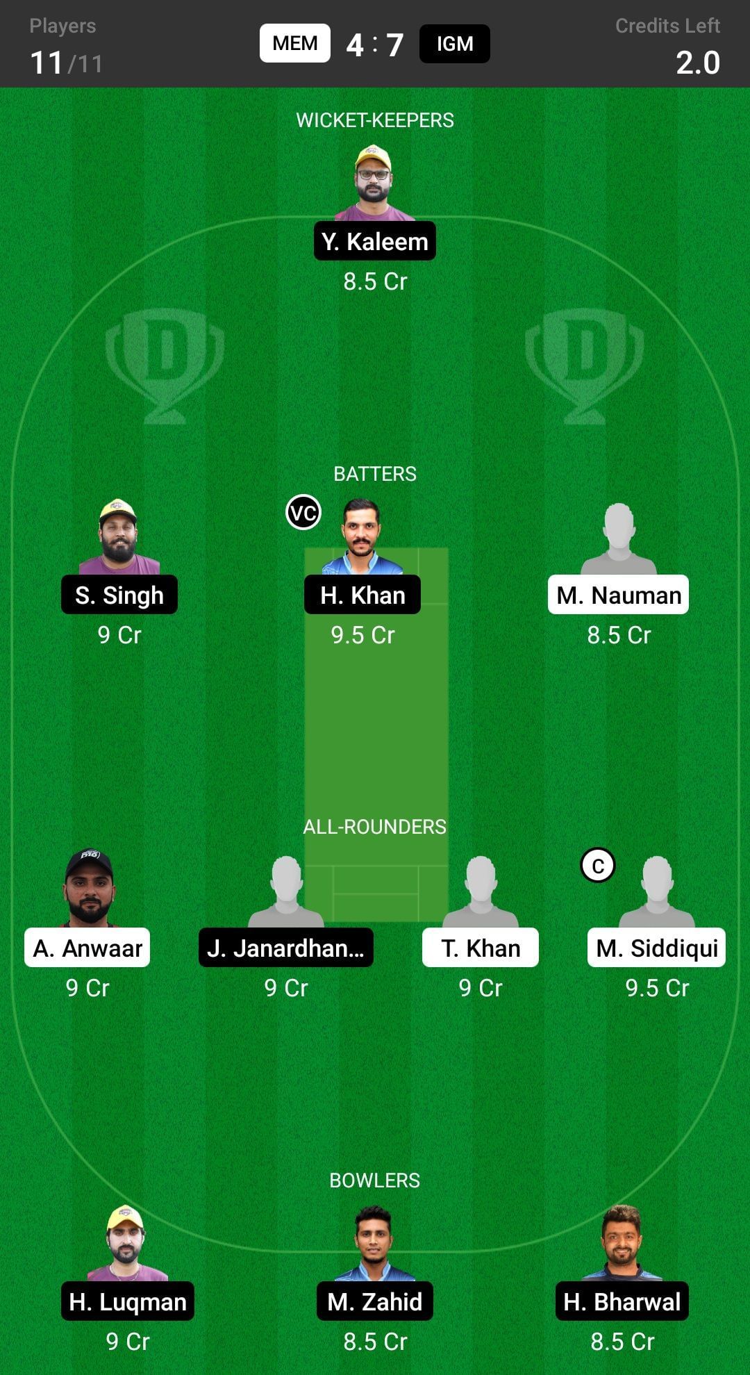 Mideast Metals vs Interglobe Marine Dream11 Prediction Today, Grand League