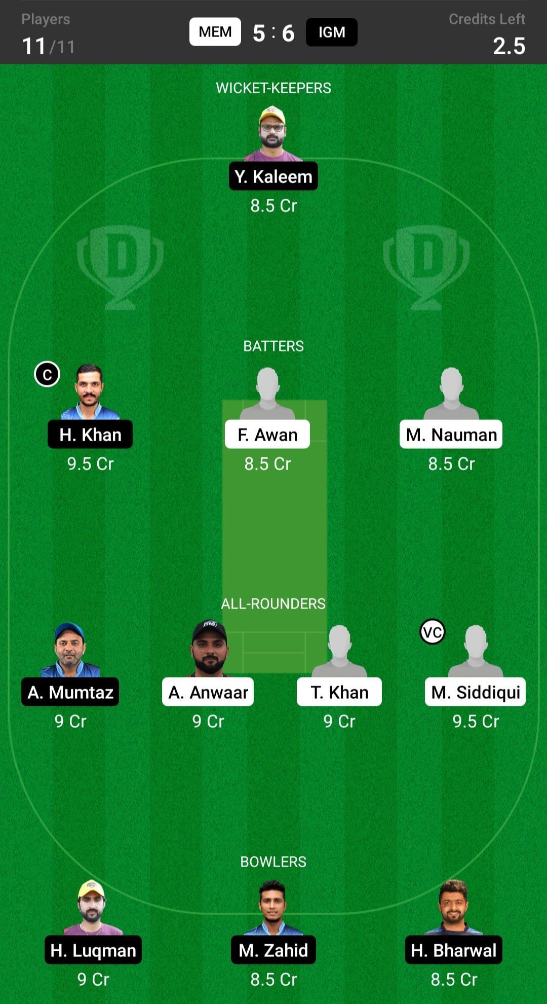 M Siddiqui and A Anwaar are the best all-rounder picks for the Dream11 team as they are batting in the top order and also completing their quota of overs. A Mumtaz is another good pick for today's Dream11 team.