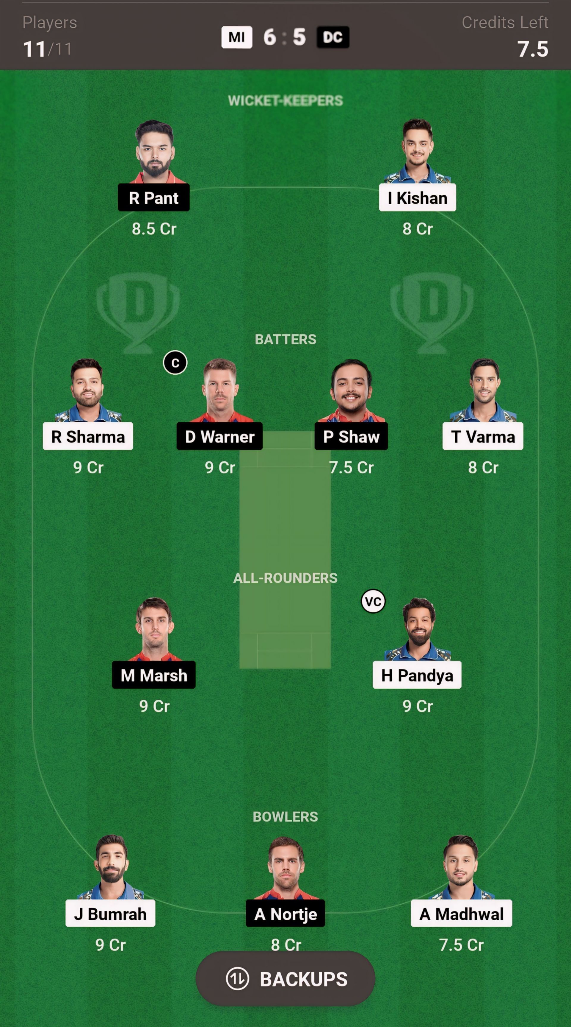 Mumbai Indians vs Delhi Capitals Dream11 Prediction Today, Grand League