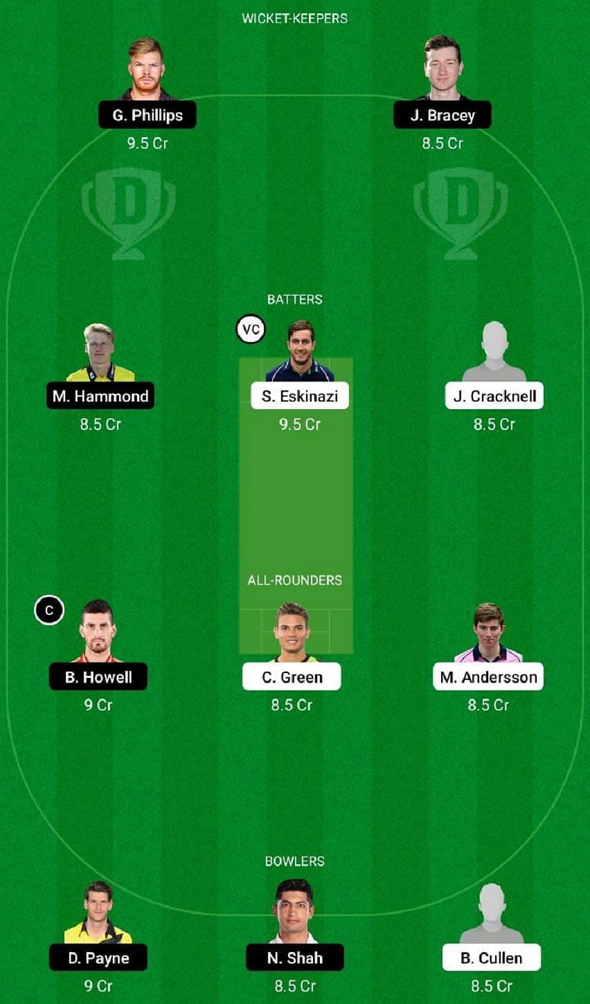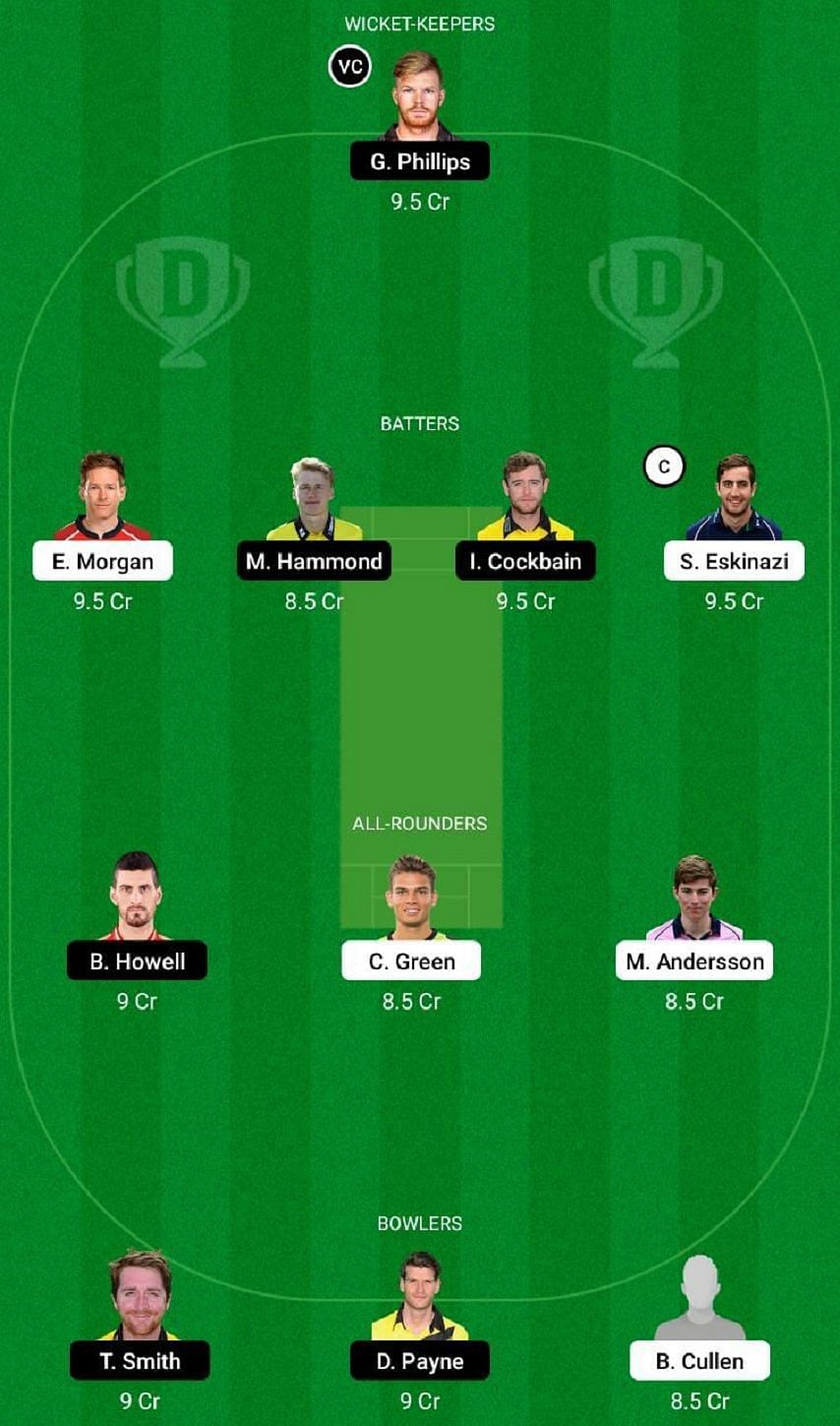 Fantasy Suggestion #1: Glenn Phillips, Eoin Morgan, Miles Hammond, Ian Cockbain, Steve Eskinazi, Benny Howell, Chris Green, Martin Andersson, Tom Smith, David Payne and Blake Cullen.