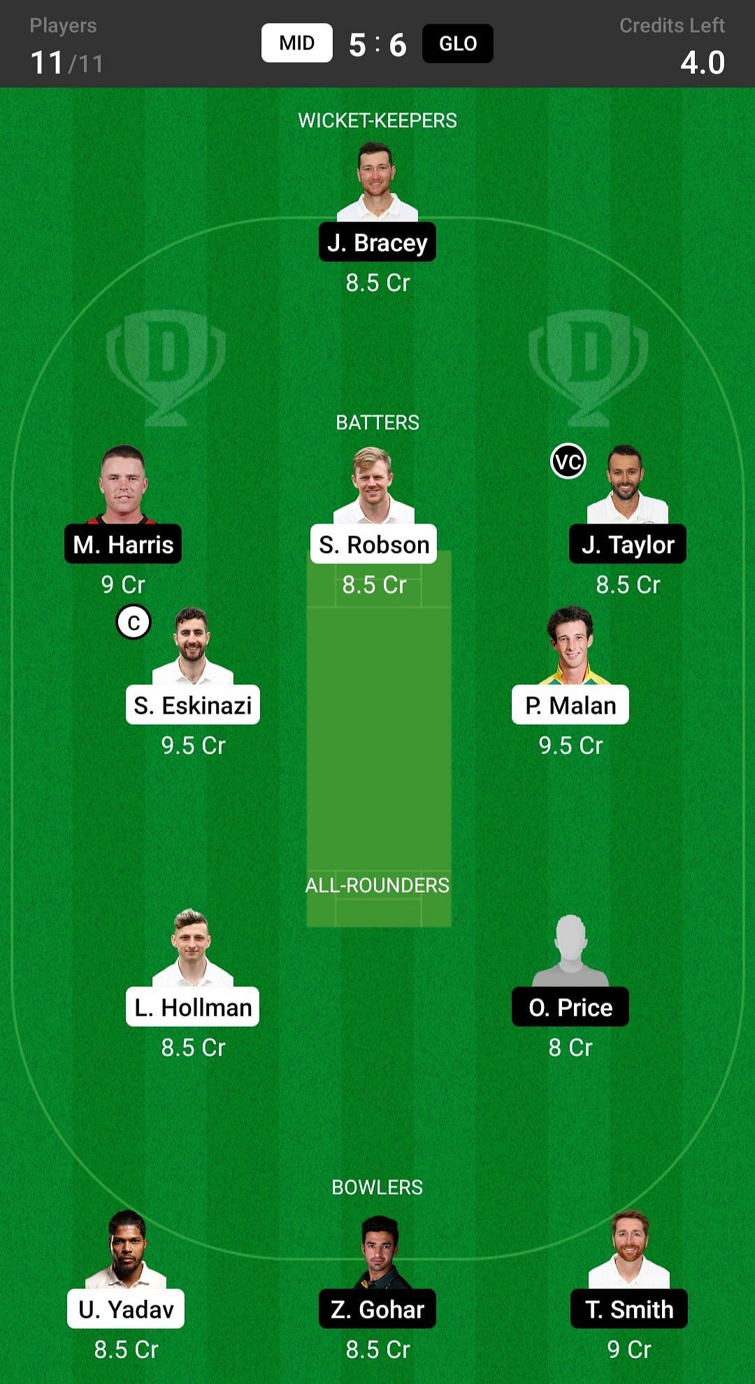 L Hollman and O Price are the two best Dream11 all-rounder picks for this game. They bat in the top order and also complete their quota of overs. Hollman has taken 12 wickets in just seven games.