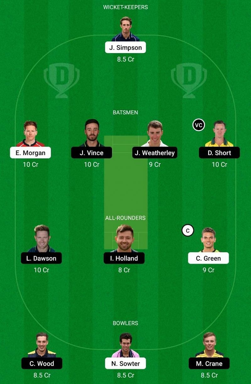 Fantasy Suggestion #1: John Simpson, Eoin Morgan, James Vince, Joe Weatherley, D'Arcy Short, Liam Dawson, Ian Holland, Chris Green, Chris Wood, Nathan Sowter, Mason Crane