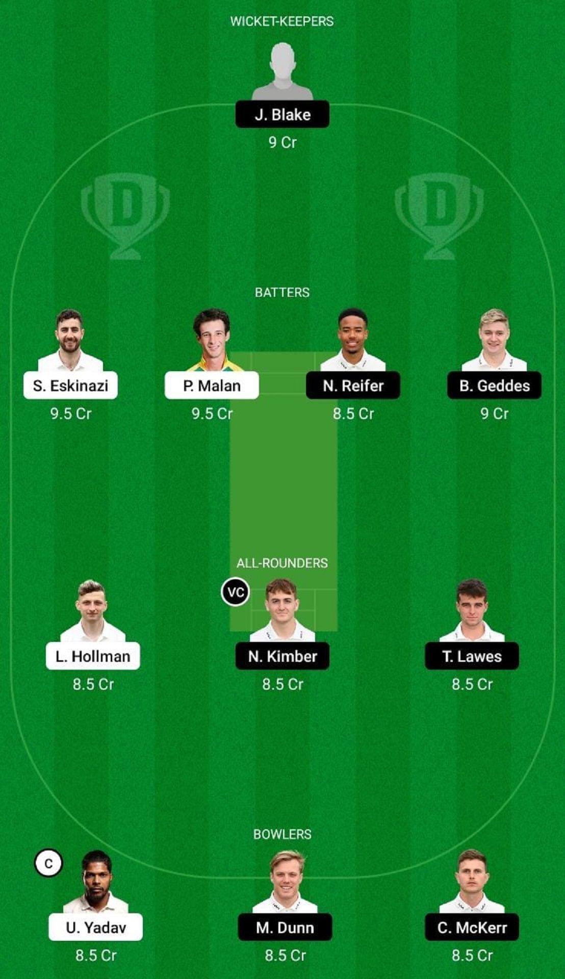Fantasy Suggestion #2: Josh Blake, Stephen Eskinazi, Ben Geddes, Nico Reifer, Pieter Malan, Luke Hollman, Nick Kimber, Thomas Lawes, Umesh Yadav, Matt Dunn, Conor McKerr