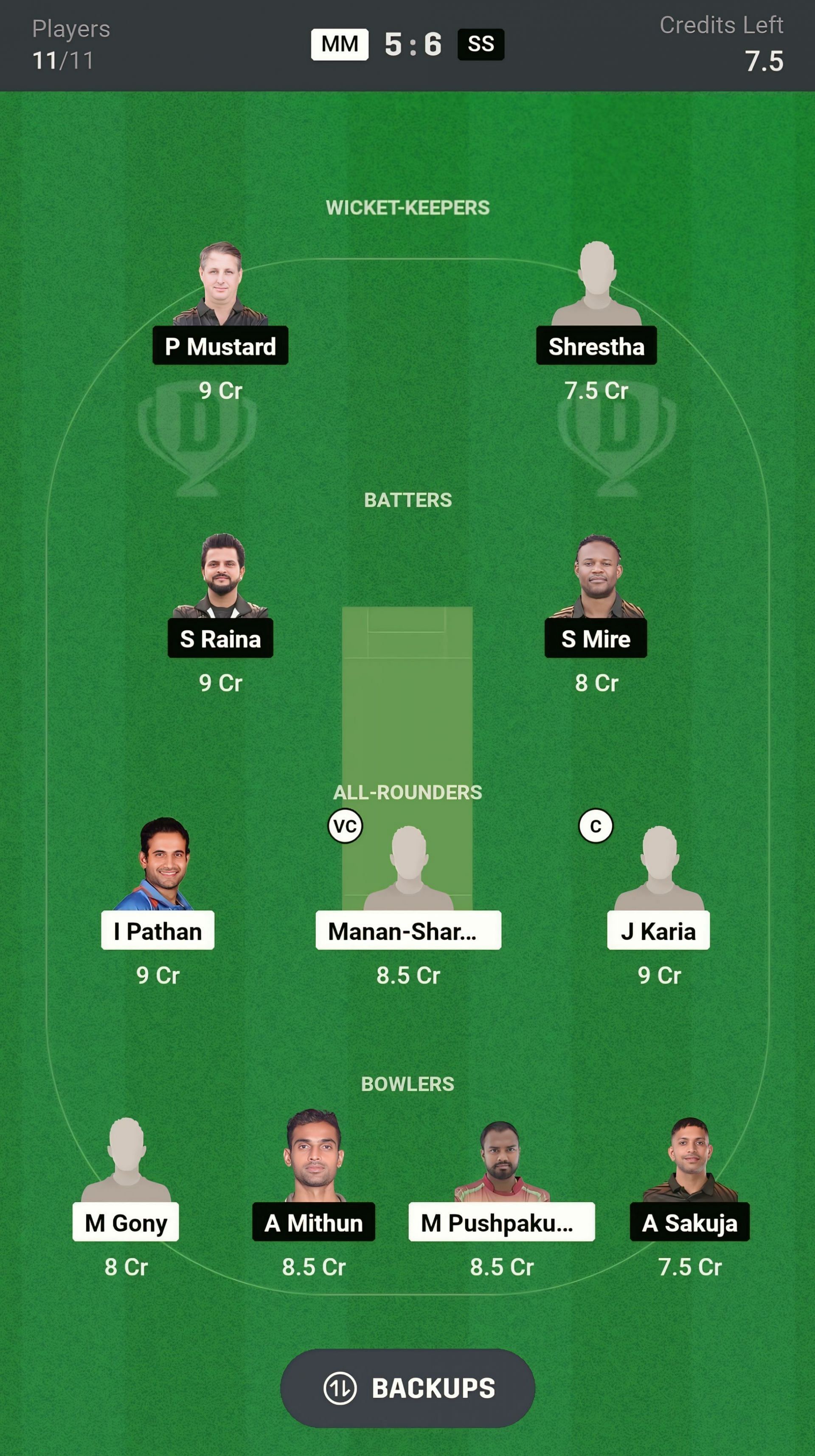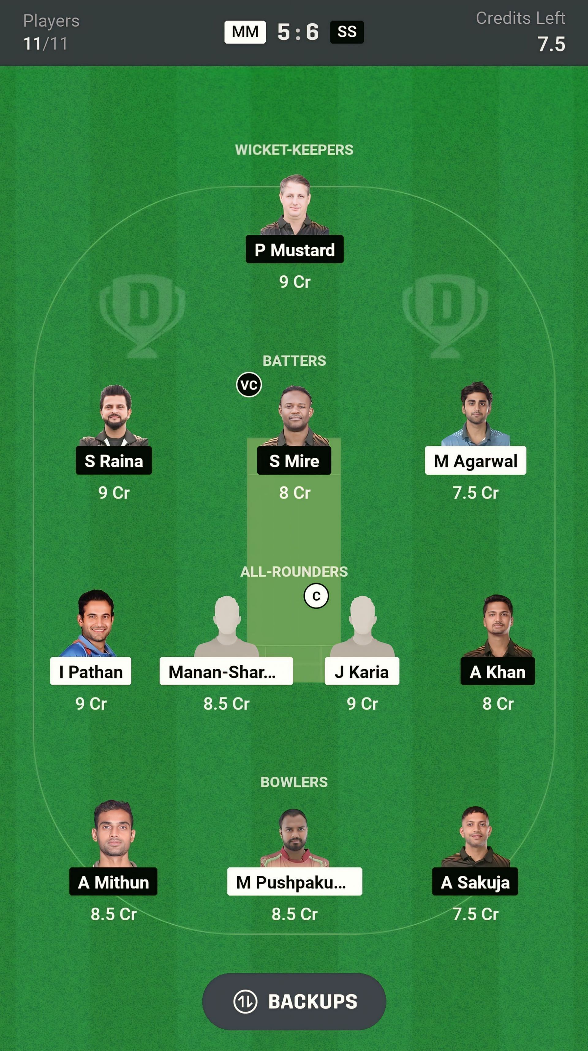 Manan Sharma and Jesal Karia are the best all-rounder picks for the Dream11 team. Both players are crucial for today's match. Jesal Karia has scored 329 runs and taken nine wickets in the last six matches. Irfan Pathan is another good all-rounder pick for today's match.