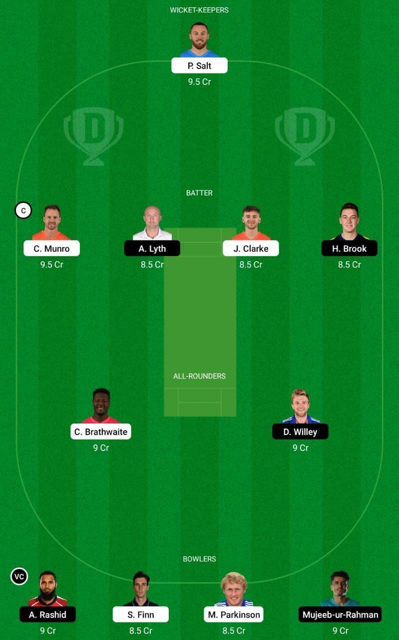 Fantasy Suggestion #1: Phil Salt, Harry Brook, Adam Lyth, Colin Munro, Joe Clarke, Carlos Brathwaite, David Willey, Matt Parkinson, Adil Rashid, Steven Finn and Mujeeb ur Rehman
