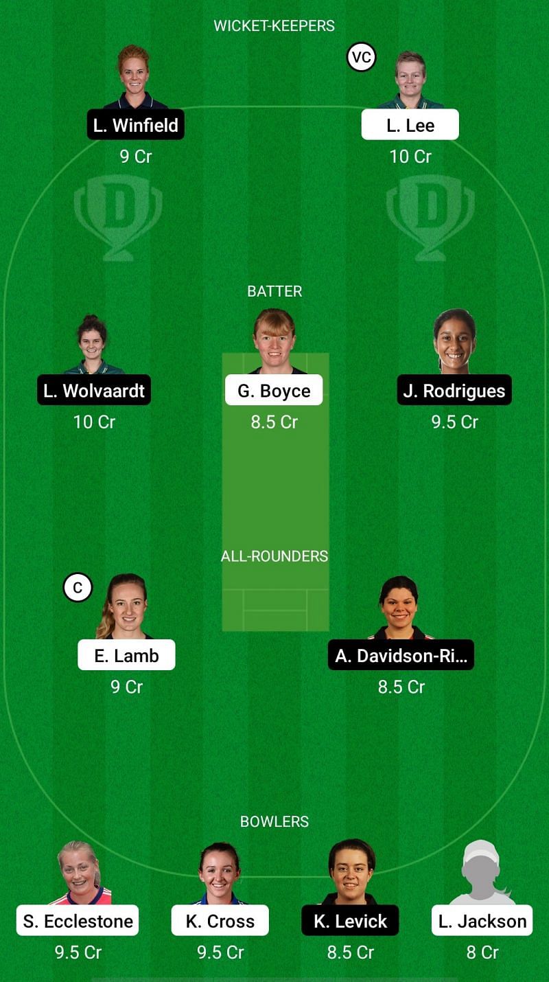 Fantasy Suggestion #1: Lauren Winfield Hill, Lizelle Lee, Laura Wolvaardt, Georgie Boyce, Jemimah Rodrigues, Emma Lamb, Alice Davidson Richards, Sophie Ecclestone, Kate Cross, Katie Levick, Laura Jackson.