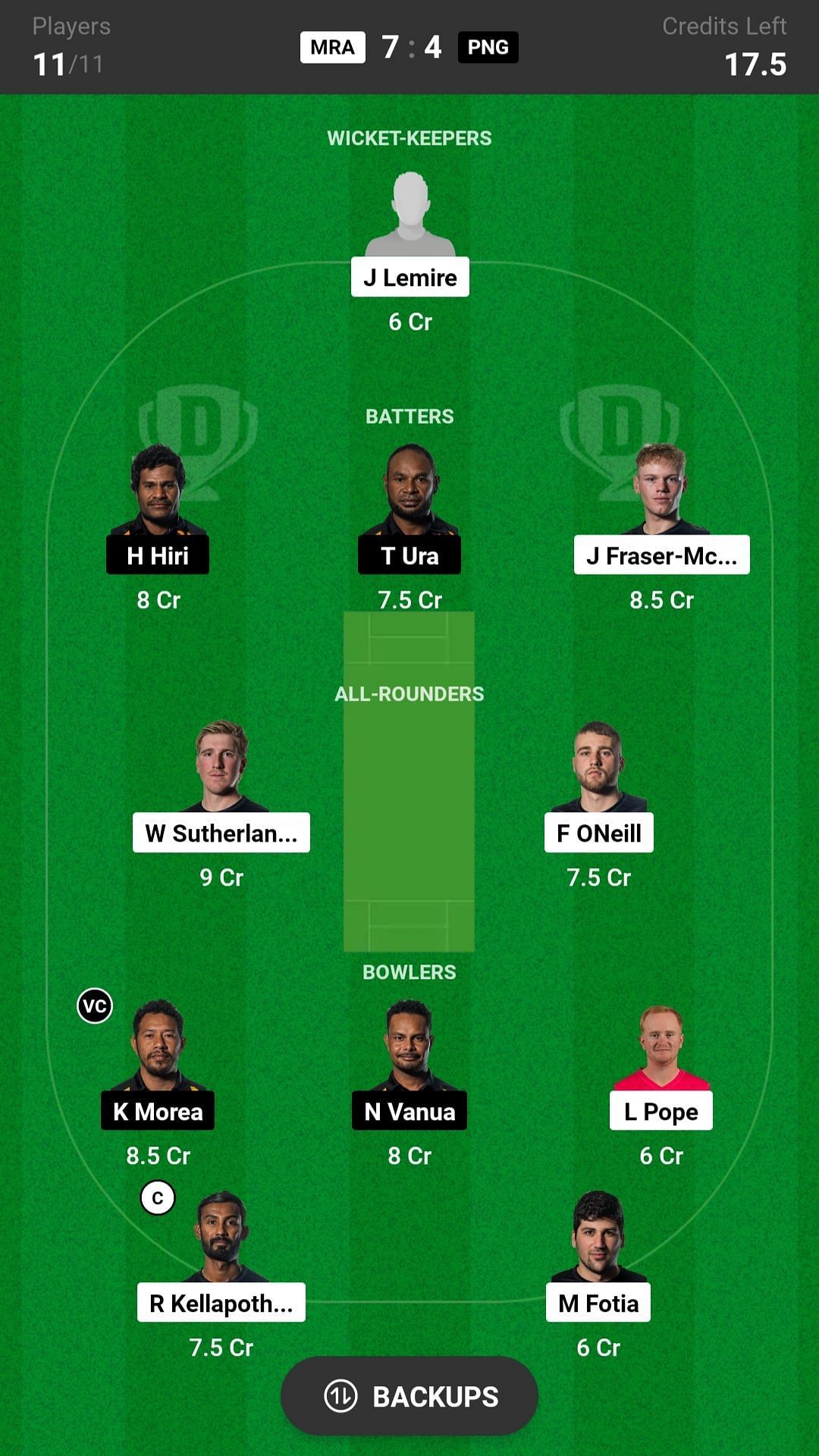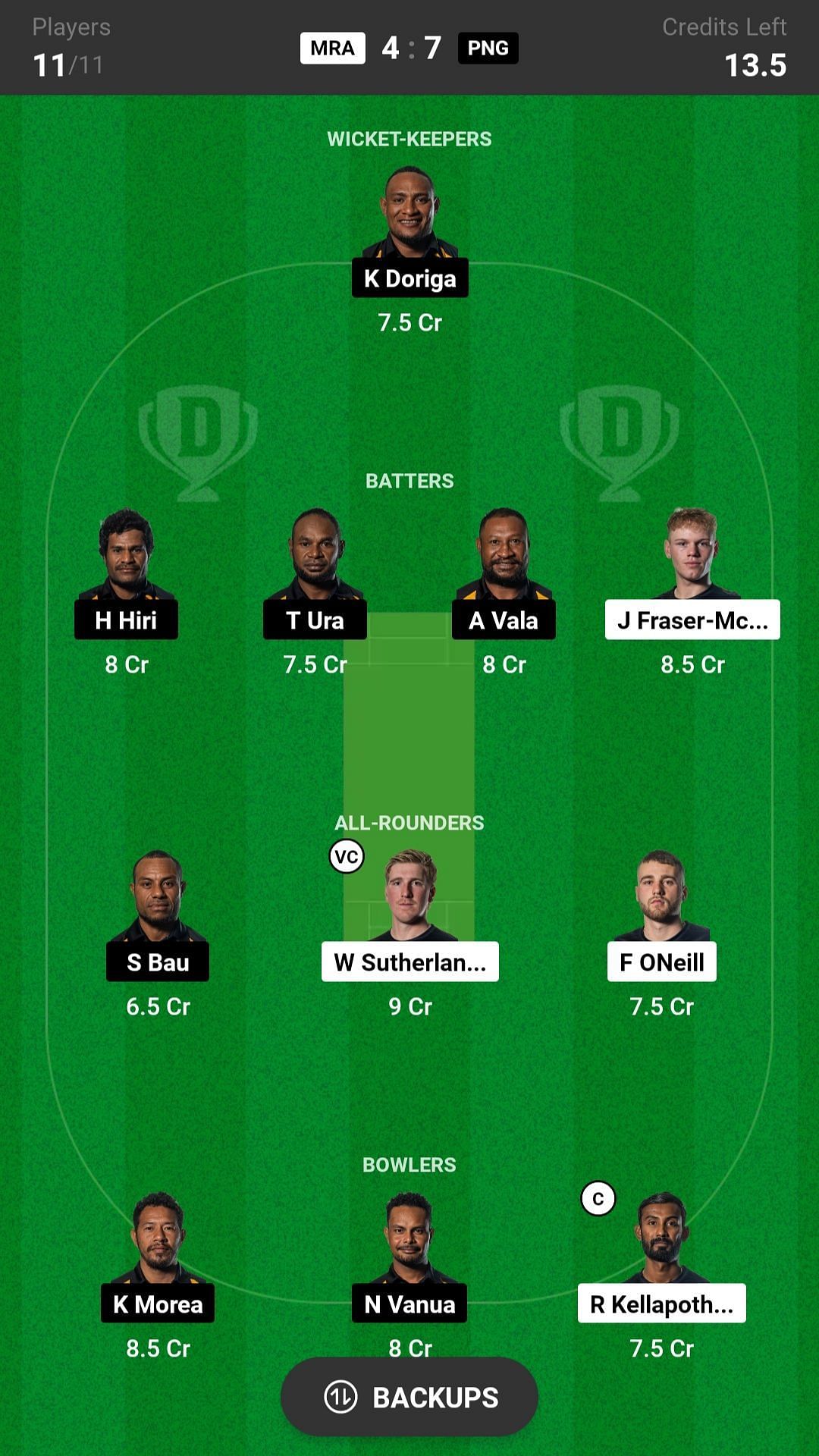 MRA vs PNG match captain and vice-captain choices