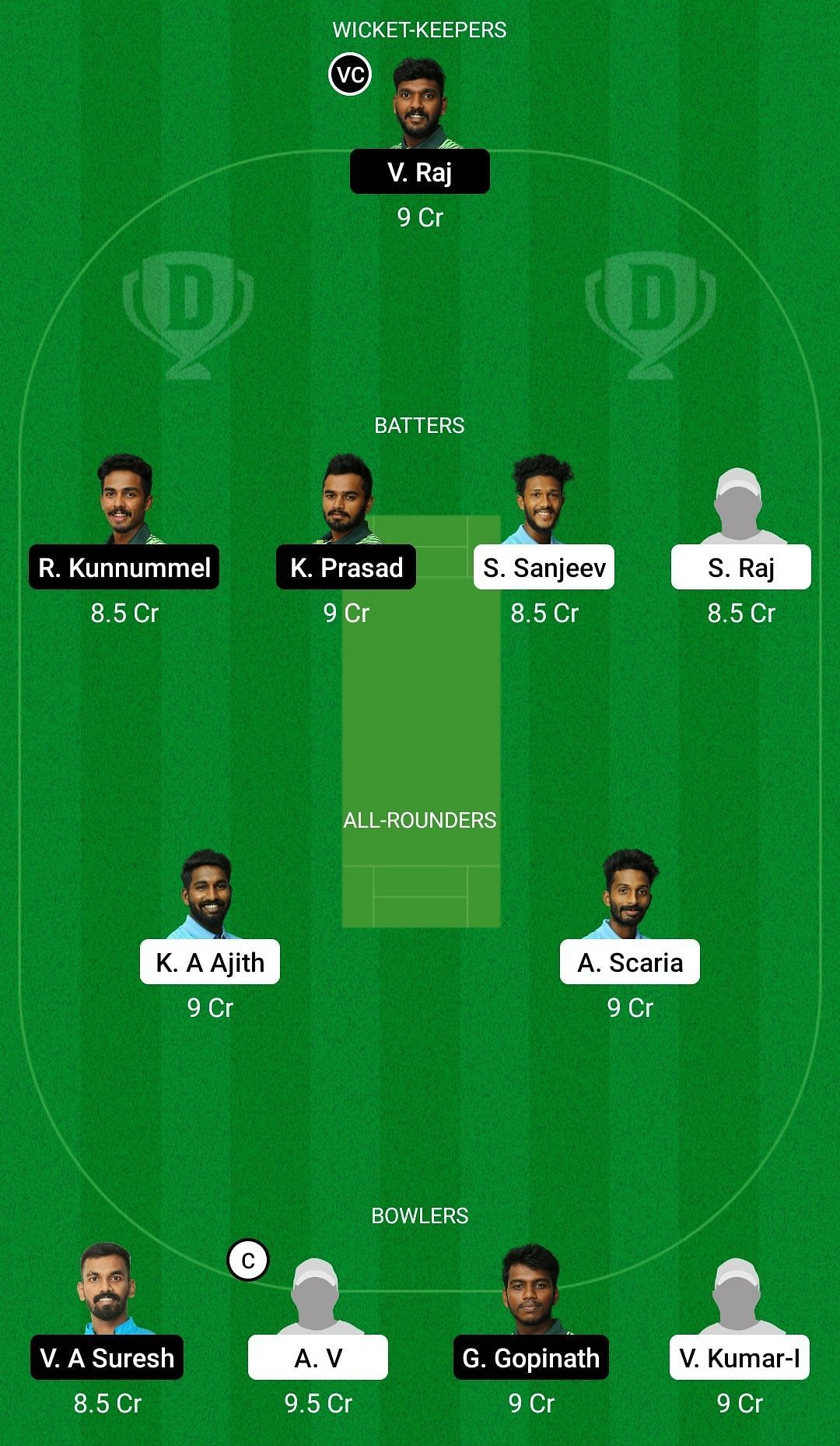 Fantasy Suggestion #2: Vishnu Raj, Rohan Kunnummal, Krishna Prasad, Sanju Sanjeev, Sanjay Raj, K A Ajith, Akhil Scaria, Vishweshwar A Suresh, Ajith V, Gokul Gopinath, Vinod Kumar.