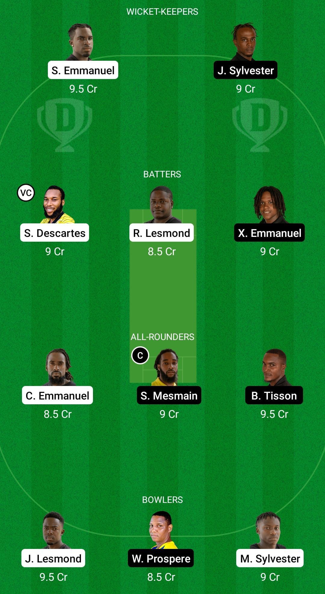 Fantasy Suggestion #1: Sabinus Emmanuel, Julian Sylvester, Sadrack Descartes, Rohan Lesmond, Xytus Emmanuel, Craig Emmanuel, Shani Mesmain, Bradley Tisson, Jamal Lesmond, Wayne Prospere, Marklin Sylvester