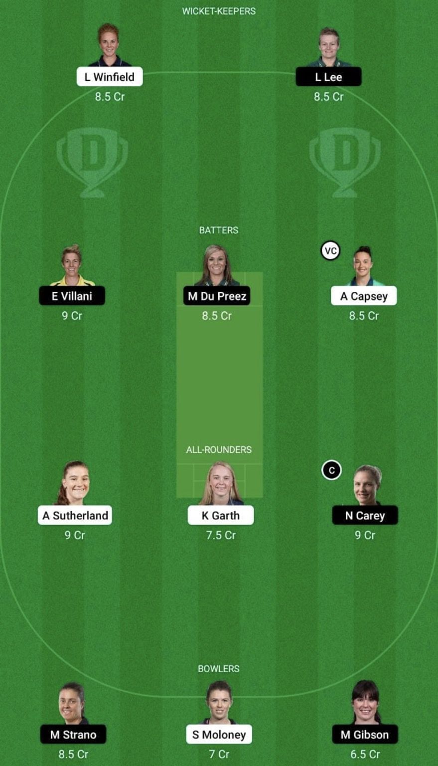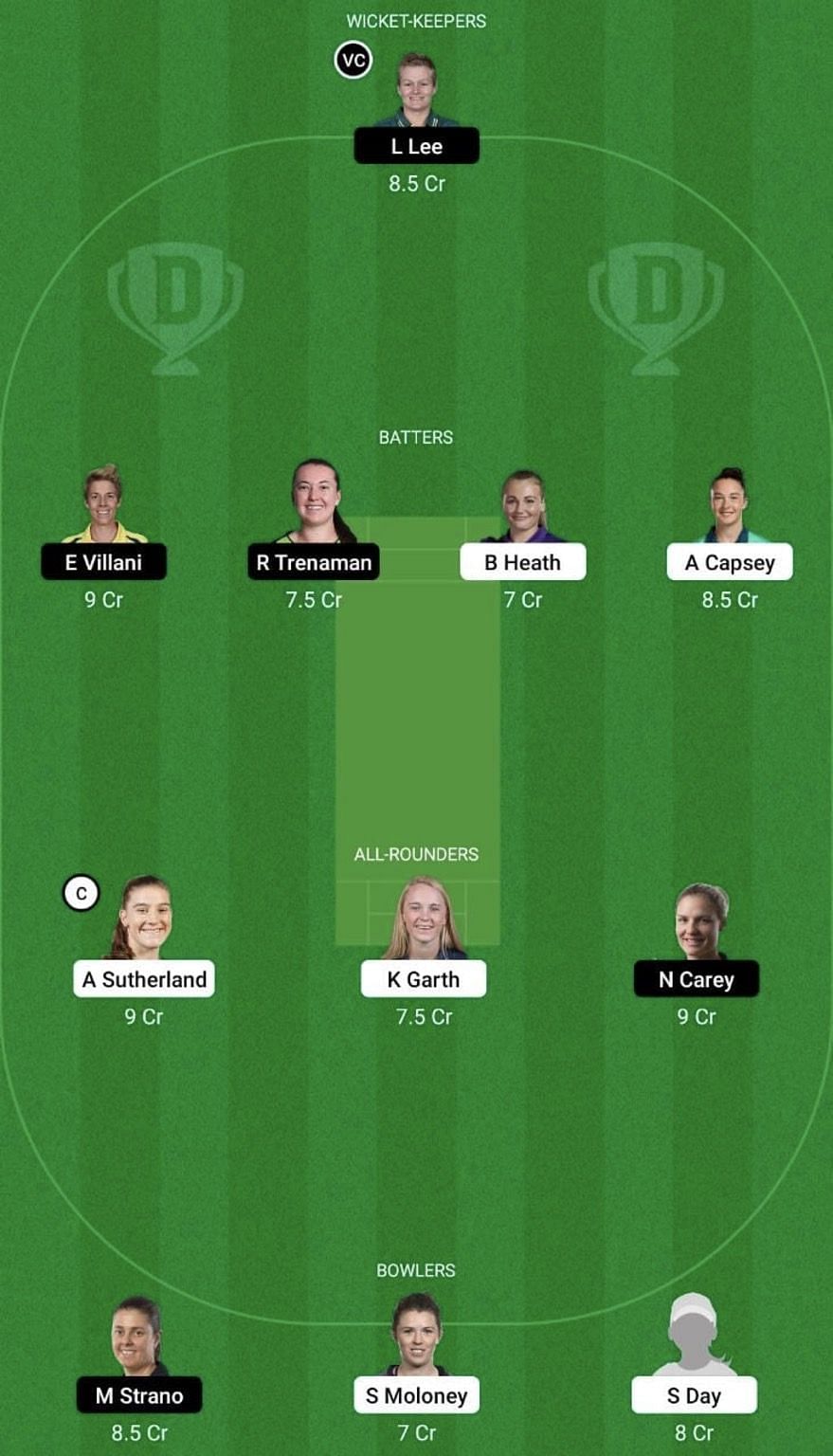Ellyse Villani (c), Lizelle Lee (wk), Mignon du Preez, Heather Graham/Emma Manix-Geeves, Nicola Carey, Rachel Trenaman, Naomi Stalenberg, Hayley Jensen, Maisy Gibson, Molly Strano and Amy Smith.