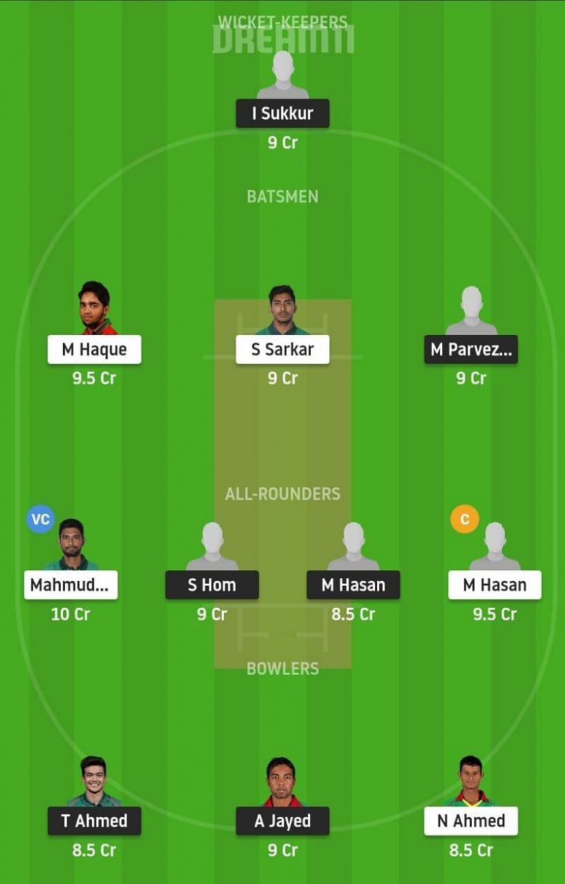 Captain: Soumya Sarkar. Vice-captain: Nasum Ahmed