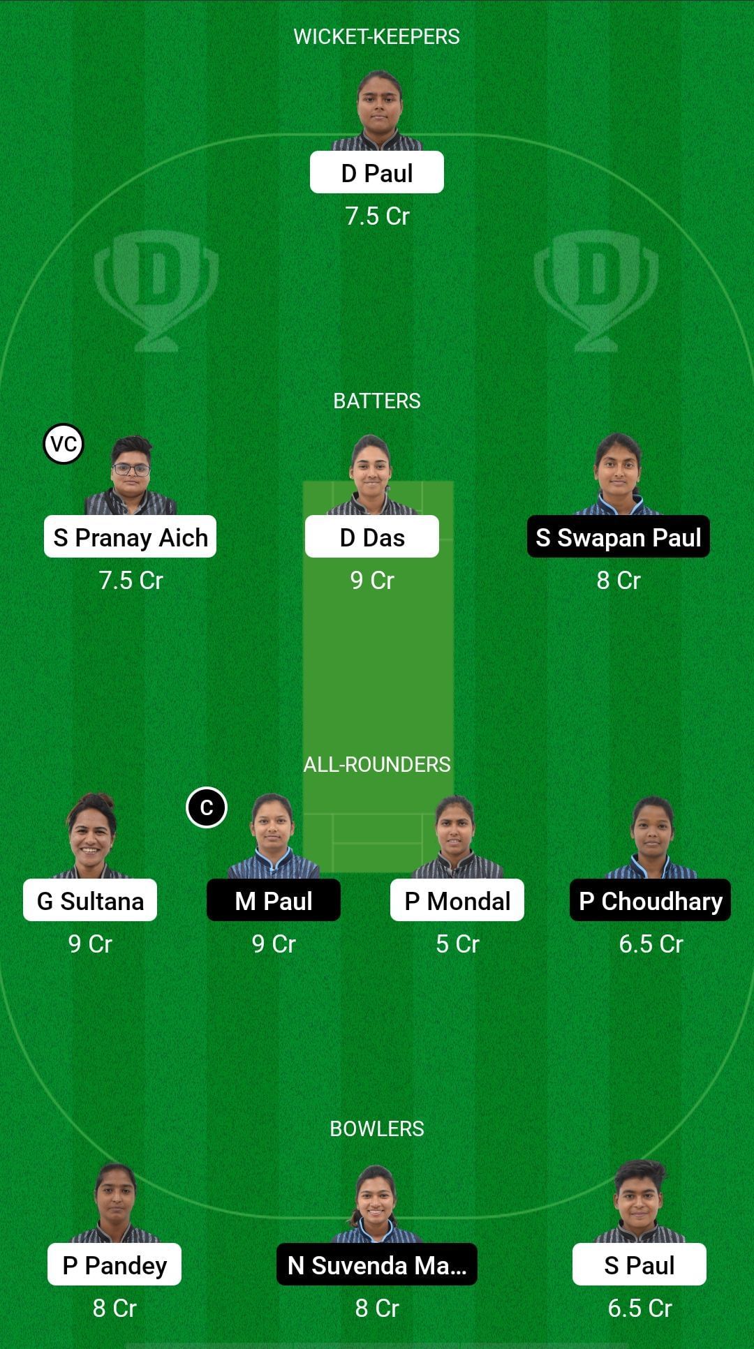 Bowlers: Priya Pandey, Nisha Maji, Sushmita Paul.