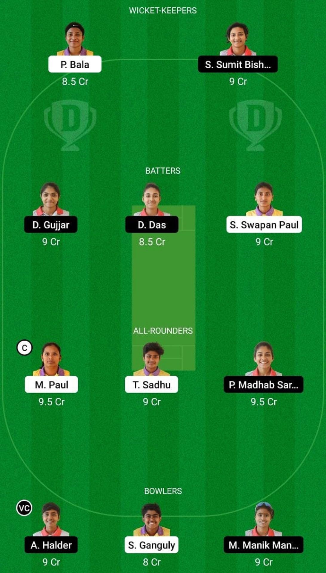 Fantasy Suggestion #1: S Sumit Bishwas, P Bala, D Gujjar, D Das, S Swapan Paul, M Paul, T Sadhu, P Madhab Sarkar, A Halder, M Manik Mandal, S Ganguly.