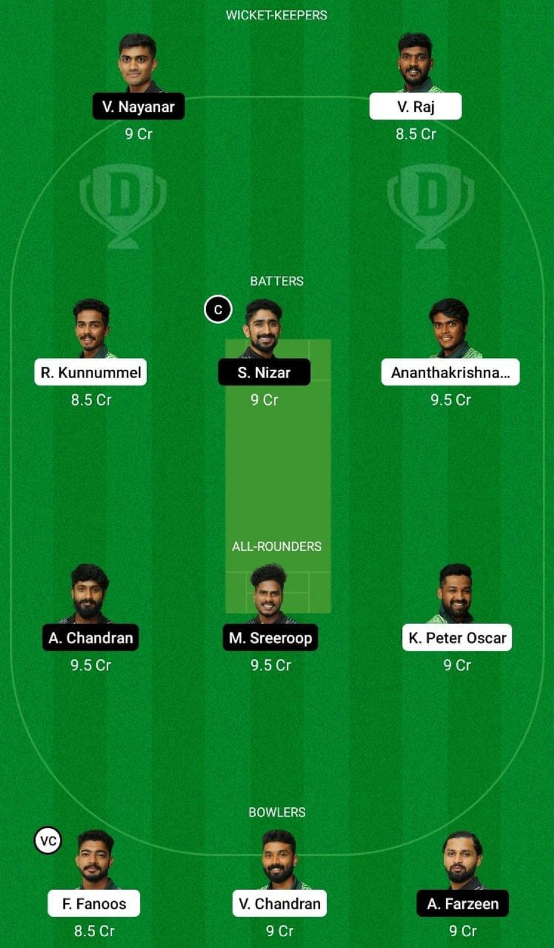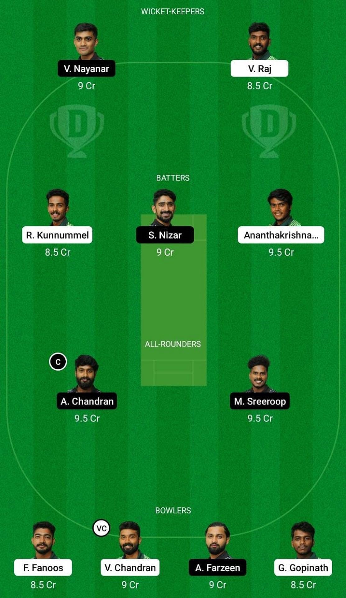 Fantasy Suggestion #1: V Raj, V Nayanar, S Nizar, R Kunnummel, Anathakrishnan J, A Chandran, M Sreeroop, V Chandran, F Fanoos, G Gopinath, A Farzeen.