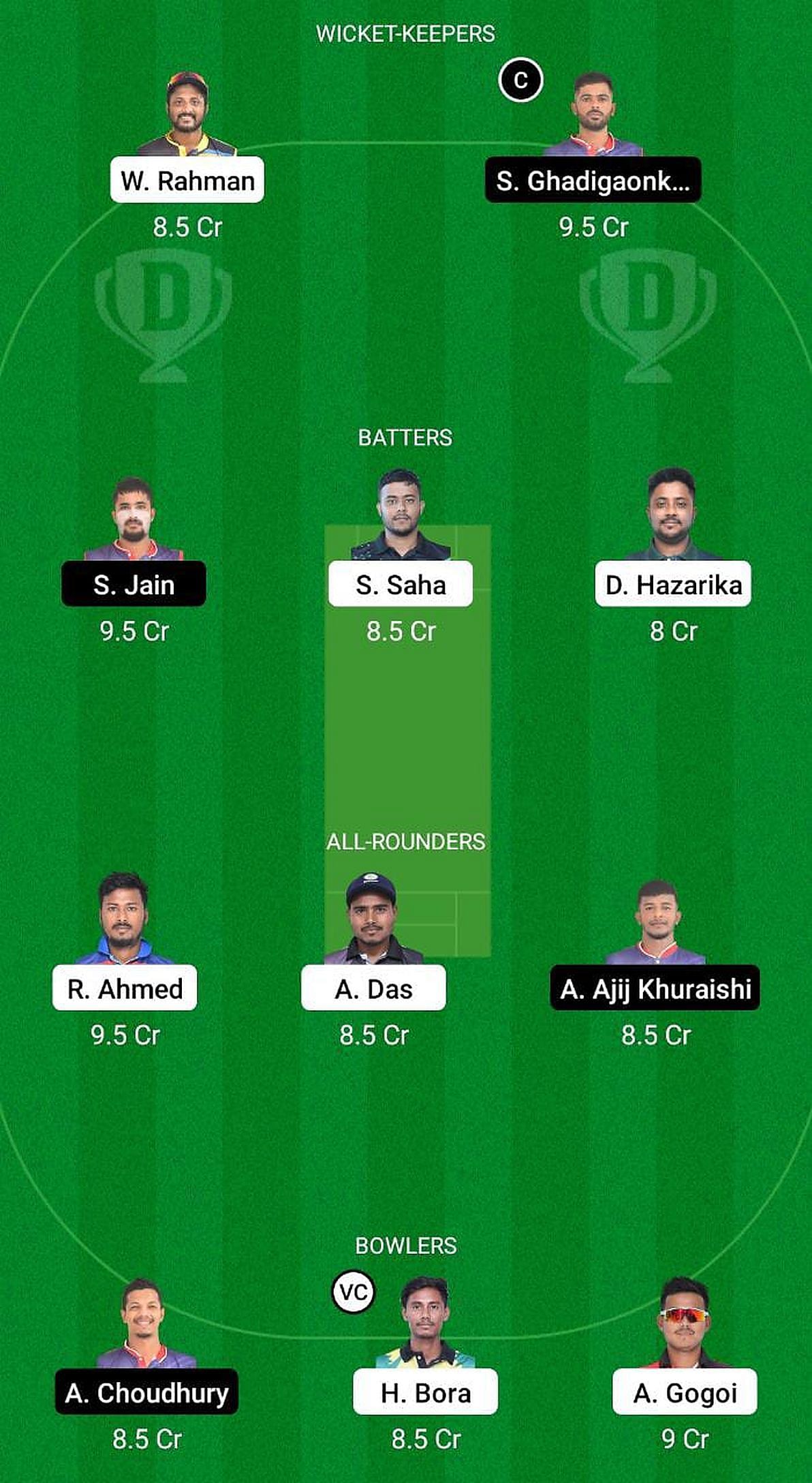 Abhishek Thakuri, Arup Das (c), Pritam Das, Sourav Saha, Dibash Hazarika, Dhruv Borah, Wasiqur Rahman (wk), Rajjakuddin Ahmed, Abhilash Gogoi, Hrishikesh Bora, Raj Agarwal