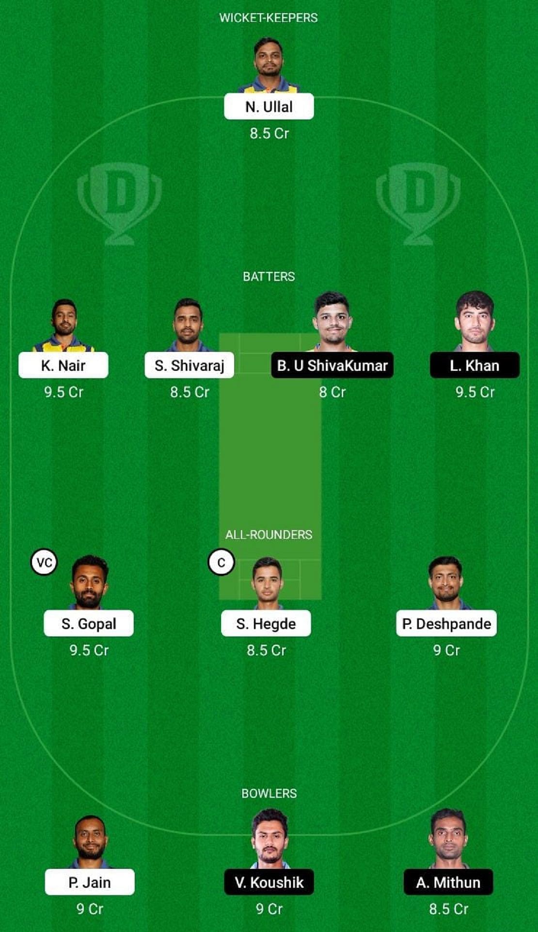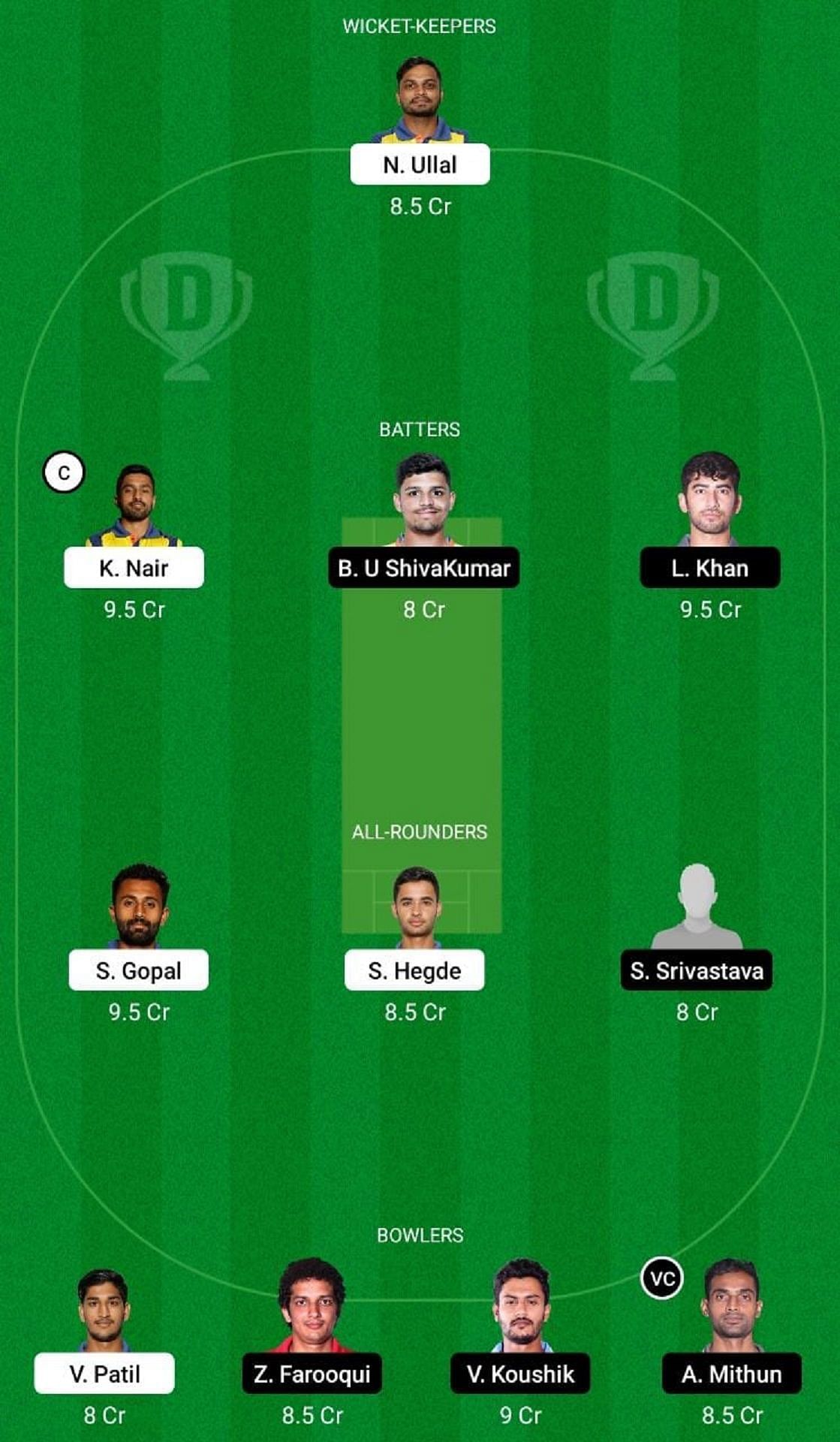 Captain: Karun Nair, Vice-Captain: Abhimanyu Mithun