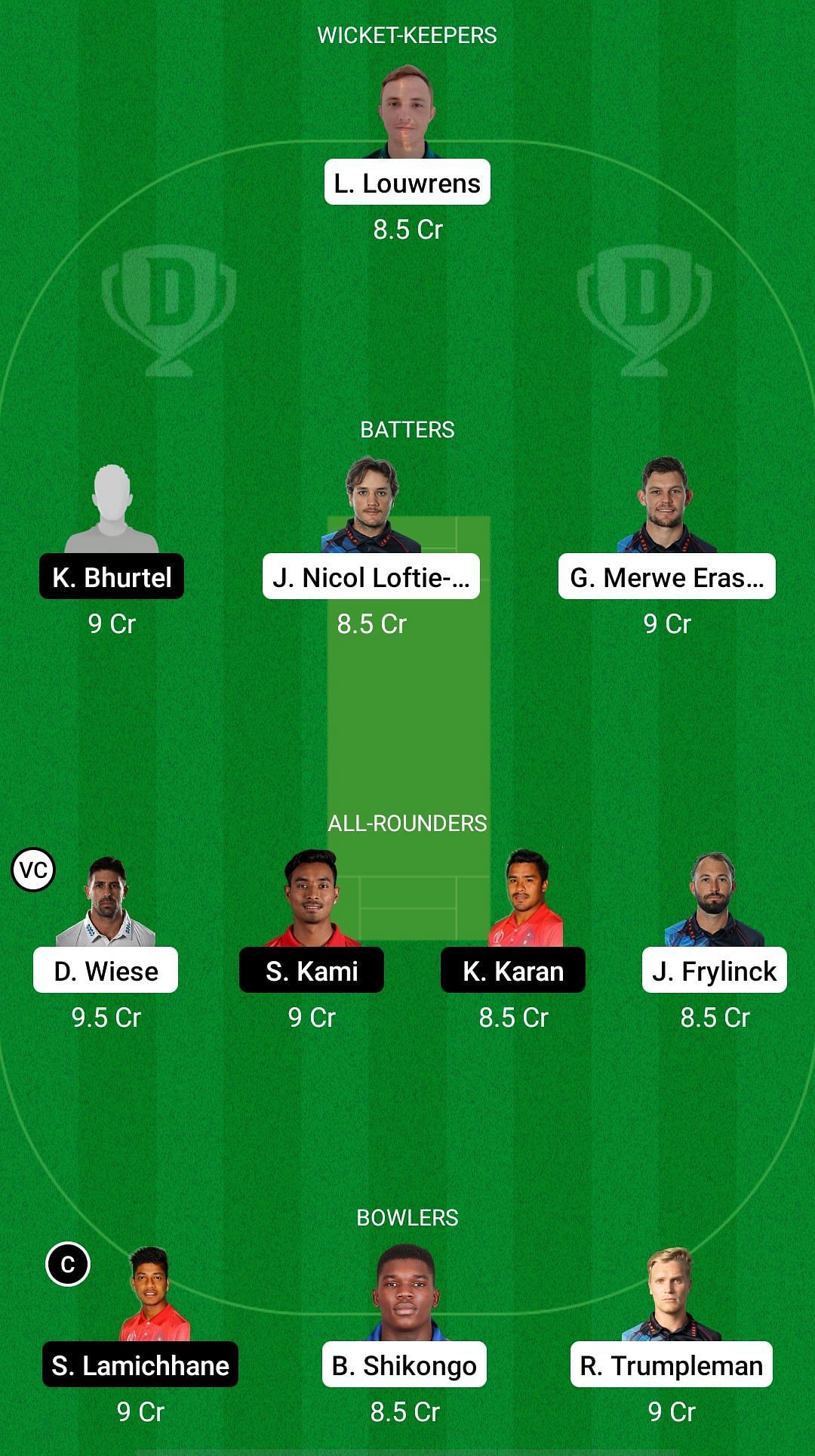 Fantasy Suggestion #2: Lohandre Louwrens, Kushal Bhurtel, Jan Nicol Loftie-Eaton, Gerhard Erasmus, Jan Frylinck, David Wiese, Sompal Kami, Karan KC, Ruben Trumpelmann, Sandeep Lamichhane, Ben Shikongo.