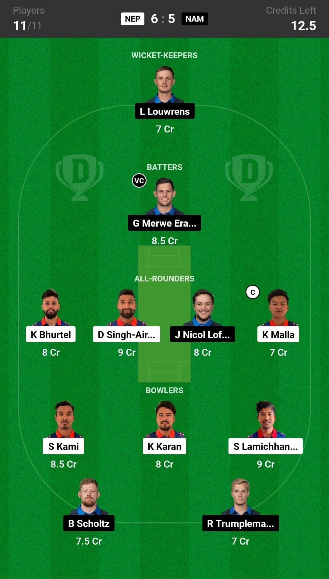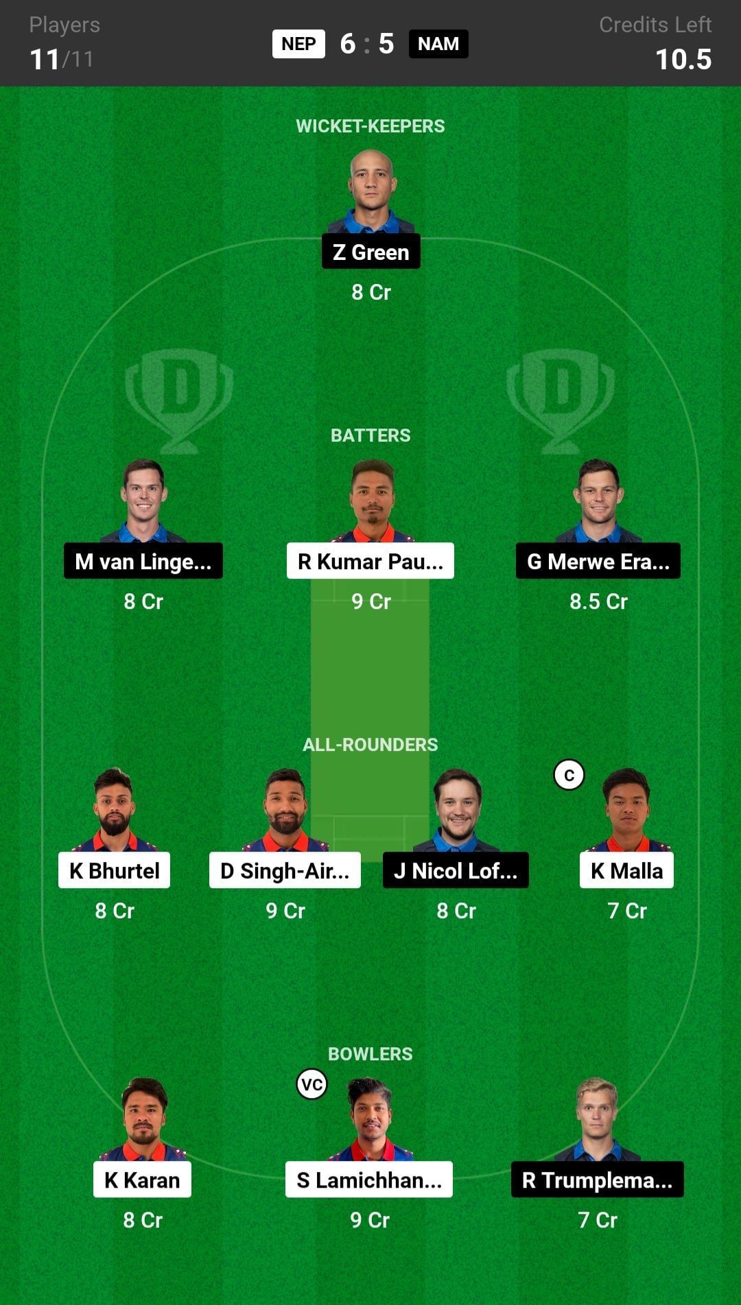 Bowlers: K Karan, R Trumpelman, S Lamichhane