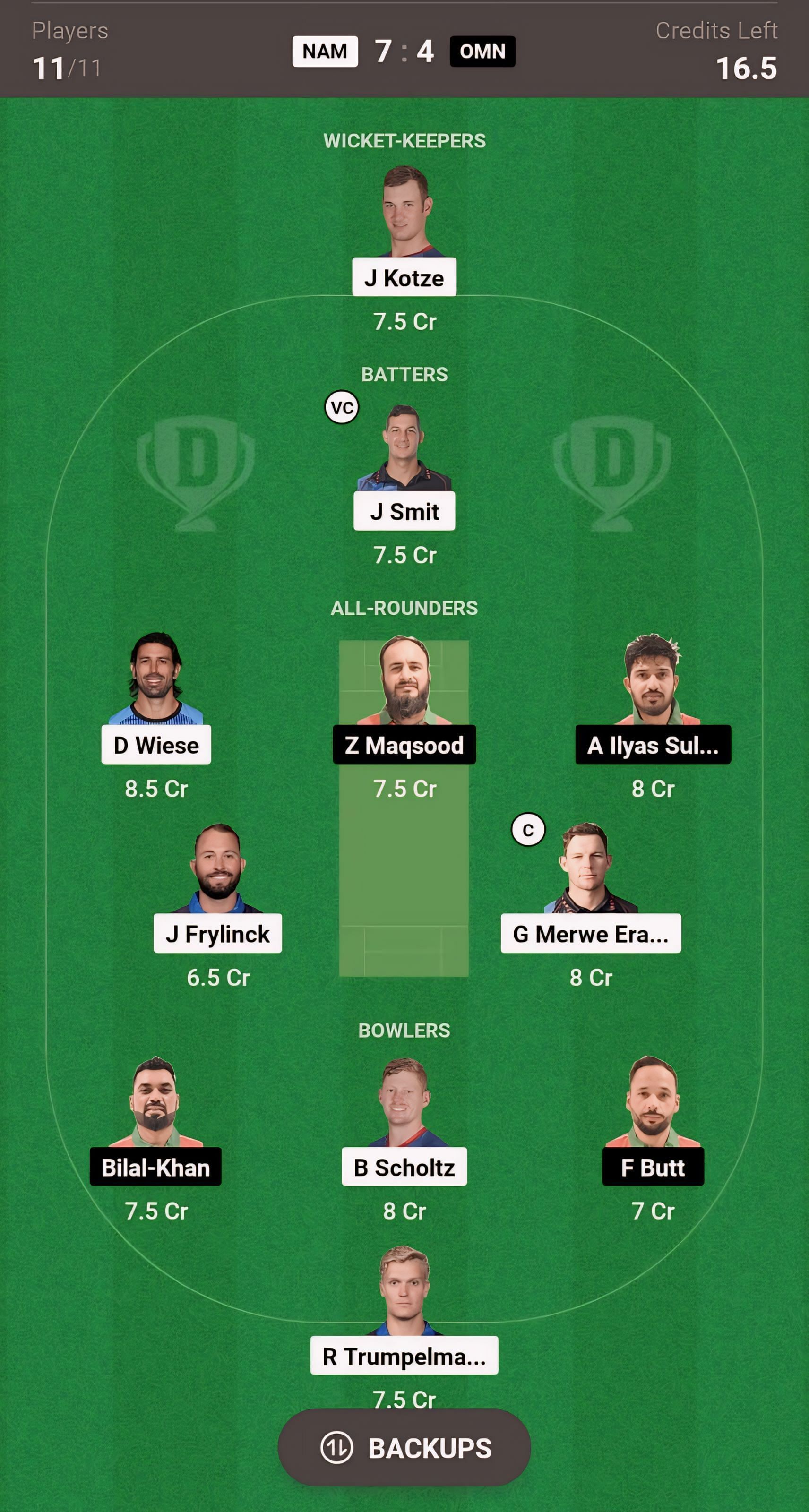 All-rounders: D Wiese, Z Maqsood, G Merwe Erasmus (c), A Ilyas, J Frylinck