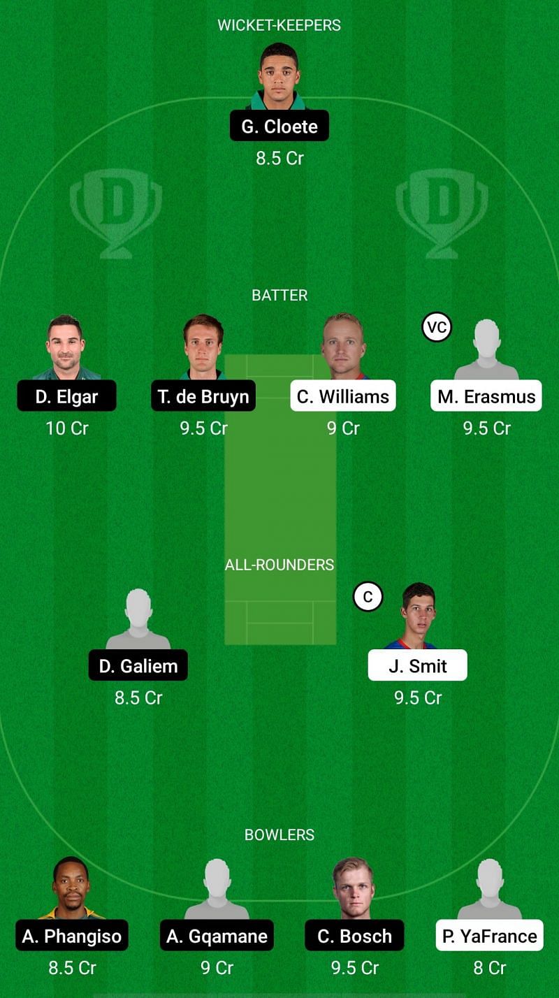Fantasy Suggestion #2: Gihahn Cloete, Dean Elgar, Theunis de Bruyn, Craig Williams, Merwe Erasmus, Dayyaan Galiem, JJ Smit, Aaron Phangiso, Ayabulela Gqamane, Corbin Bosch, Pikky Ya France.
