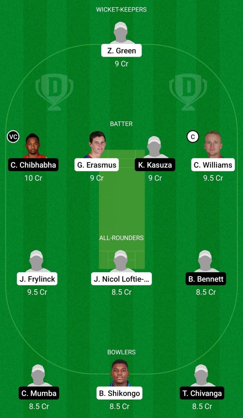 Fantasy Suggestion #1: Zane Green, Chamu Chibhabha, Gerhard Erasmus, Kevin Kasuza, Craig Williams, Jan Frylinck, Jan Nicol Loftie-Eaton, Brian Bennett, Carl Mumba, Ben Shikongo, Tanaka Chivanga