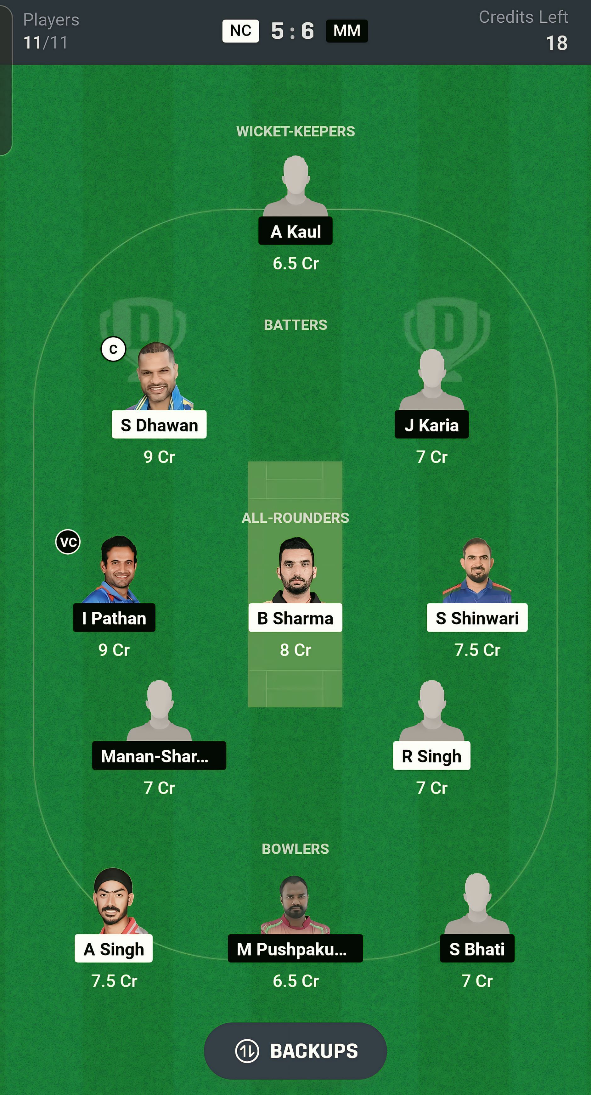 Irfan Pathan and Bipul Sharma are the best all-rounder picks for the Dream11 team. Both players are crucial for today's match.