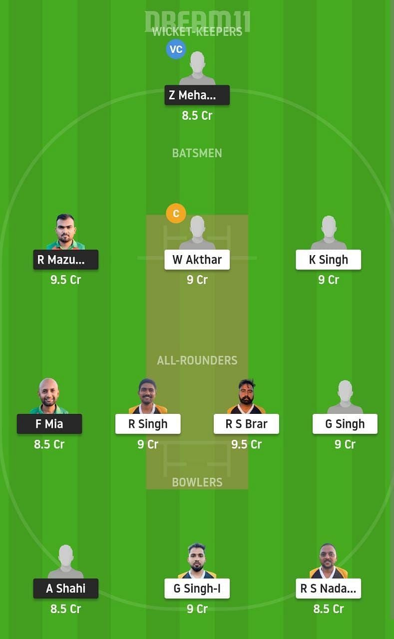 Fantasy Suggestion #1: Z Mehamood, A Bam, W Akhtar, K Singh, R Mazumder, R S Brar, F Mia, R Singh, A Shahi, G Singh, R S Nadania.