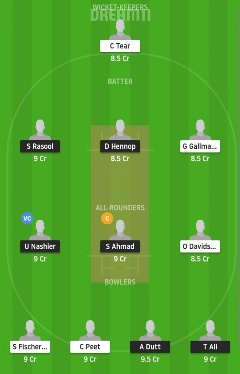 Fantasy Suggestion #1: C Tear, G Gallman-Findlay, S Rasool, D Hennop, S Ahmad, U Nashier, O Davidson, C Peet, T Ali, S Fischer-Keogh, A Dutt
