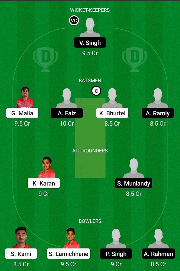 Fantasy Suggestion #1: Virandeep Singh, Kushal Bhurtel, Aminuddin Ramly, Gyanendra Malla, Ahmad Faiz, KC Karan, Sharvin Muniandy, Sandeep Lamichhane, Pavandeep Singh, Anwar Rahman, Sompal Kami.