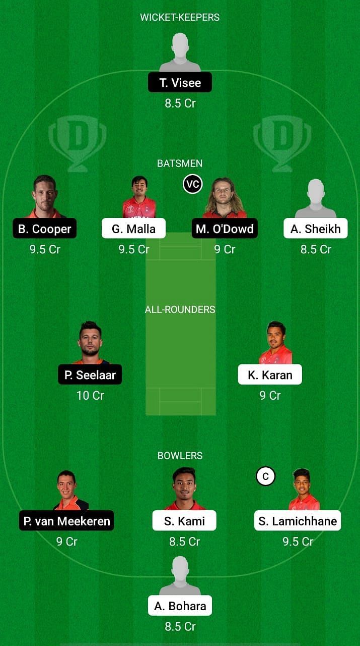 Fantasy Suggestion#1: Tobias Visee, Gyanendra Malla, Aarif Sheikh, Ben Cooper, Max O'Dowd, Karan KC, Pieter Seelaar, Sompal Kami, Sandeep Lamichhane, Abinash Bohara, Paul van Meekeren.