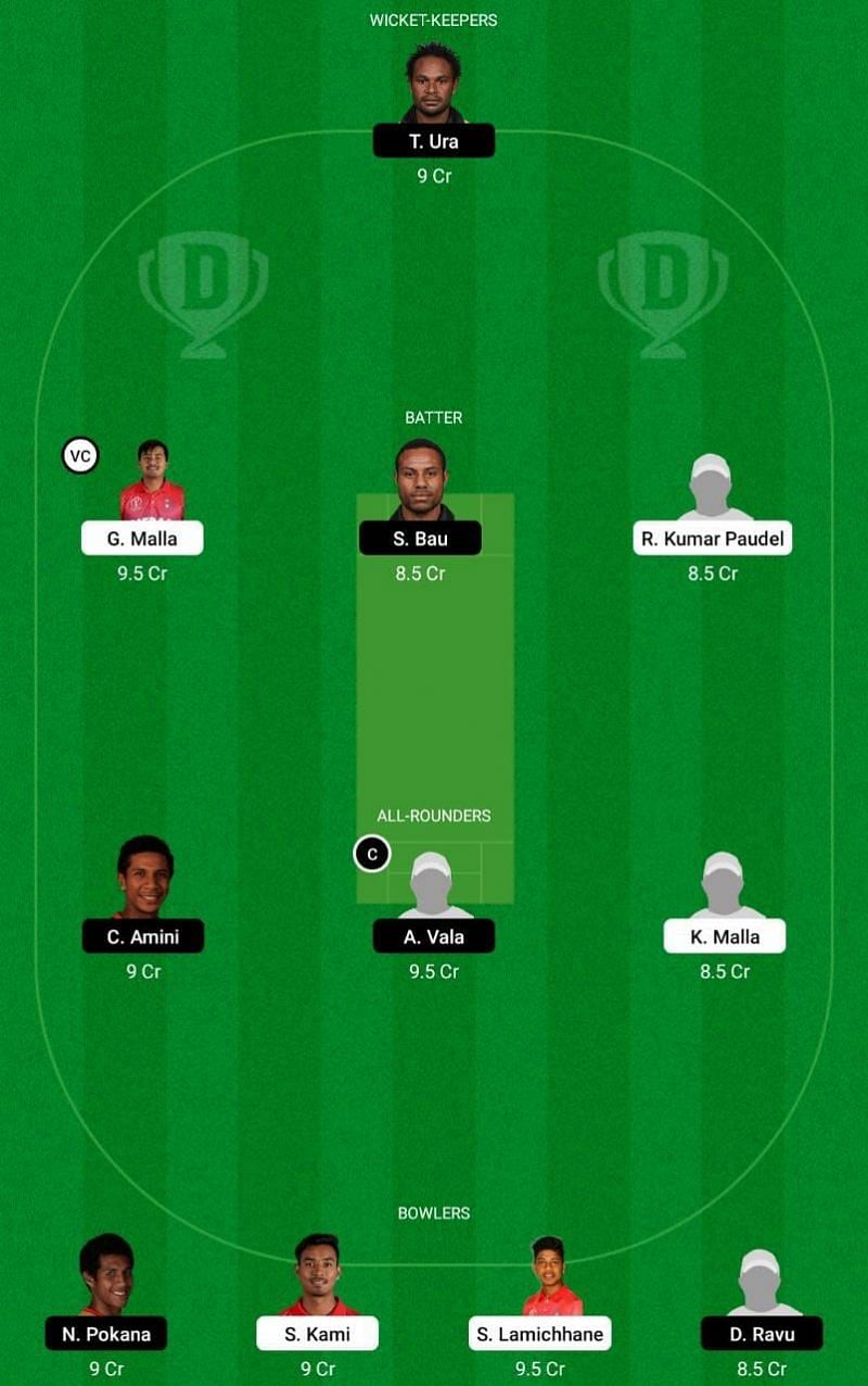 Fantasy Suggestion #1: T Ura, G Malla, S Bau, R Kumar Paudel, C Amini, A Vala, K Malla, N Pokana, S Kami, S Lamichhane and D Ravu