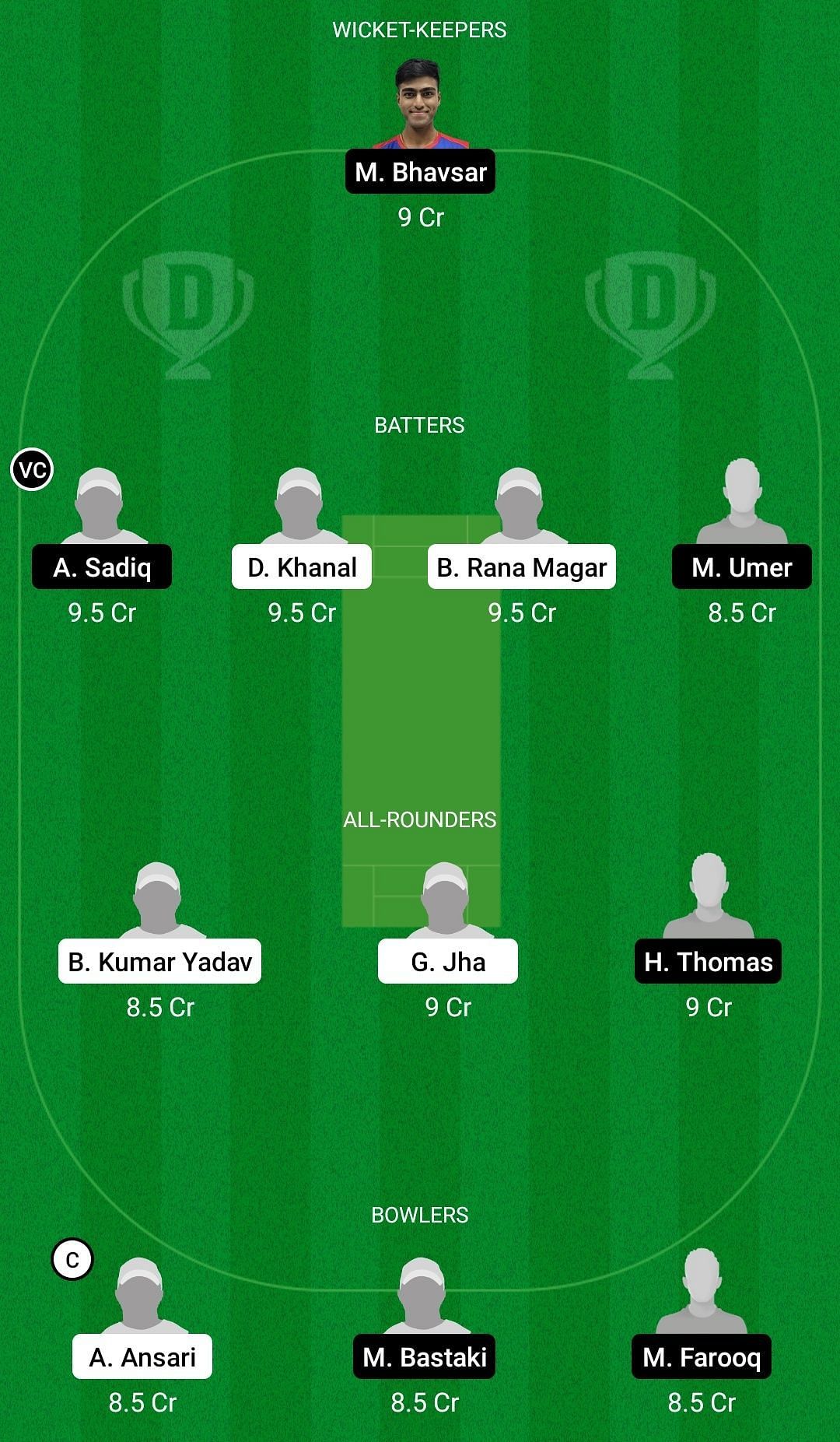 Fantasy Suggestion #1: Meet Bhavsar, Arjun Saud, Abdul Sadiq, Dev Khanal, M Umer, Abdullah Zaheer, Bibek Kumar Yadav, Gulsan Jha, Mohammad Aadil Ansari, Tilak Bhandari, Ahad Habier Ali