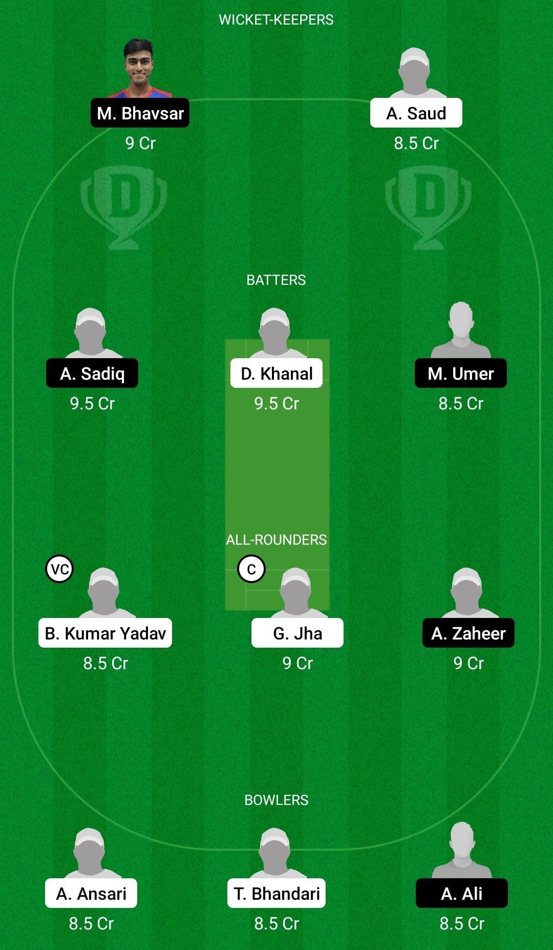 Captain: Mohammad Aadil Ansari. Vice-captain: Abdul Sadiq.