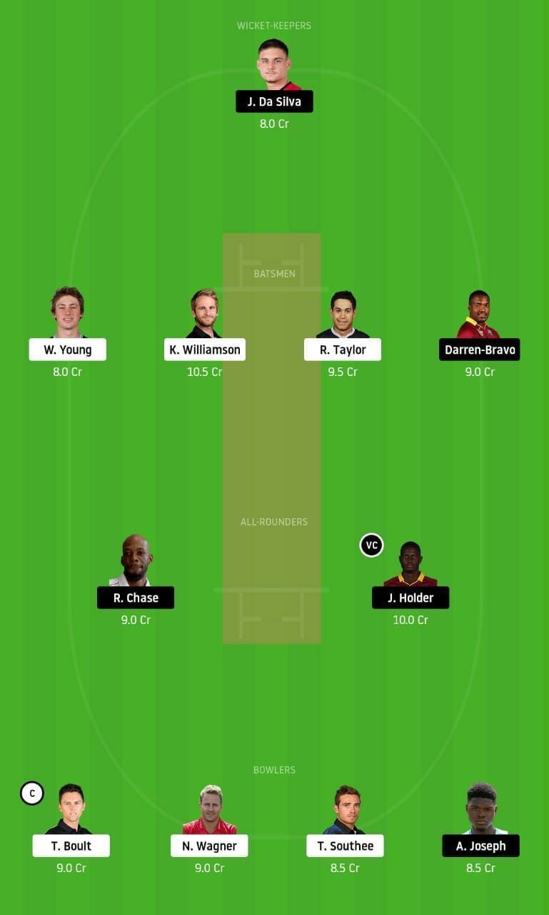 Fantasy Suggestion #1: Joshua da Silva, Kane Williamson, Ross Taylor, Darren Bravo, Will Young, Jason Holder, Roston Chase, Tim Southee, Alzarri Joseph, Neil Wagner and Trent Boult