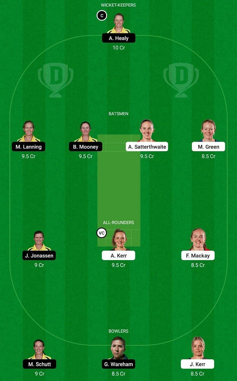 Fantasy Suggestion #1: A Healy, B Mooney, M Lanning, A Satterthwaite, M Green, F Mackay, A Kerr, J Jonassen, J Kerr, M Schutt and G Wareham