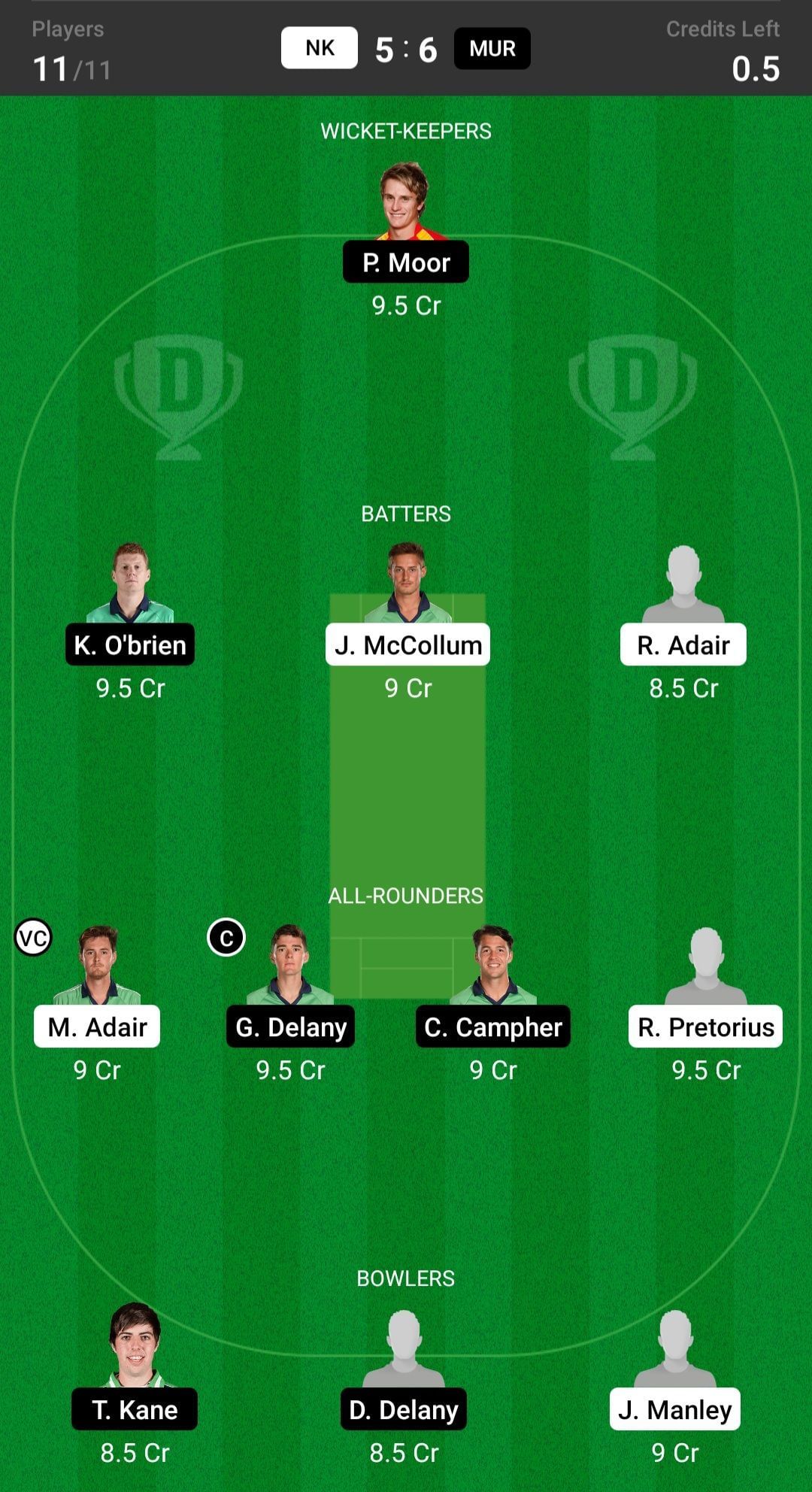K O'Brien and J McCollum are the best batsmen to pick in today's Dream11 team as they are batting in the top order and among the most experienced players of the tournament. J Lawlor is another good pick for the Dream11 team.