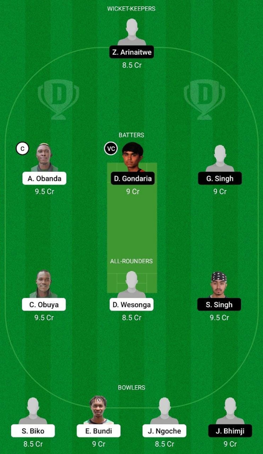 Fantasy Suggestion #2: Z Arinaitwe, A Obanda, D Gondaria, G Singh, C Obuya, D Wesonga, S Singh, E Bundi, J Bhimji, J Ngoche, S Biko.
