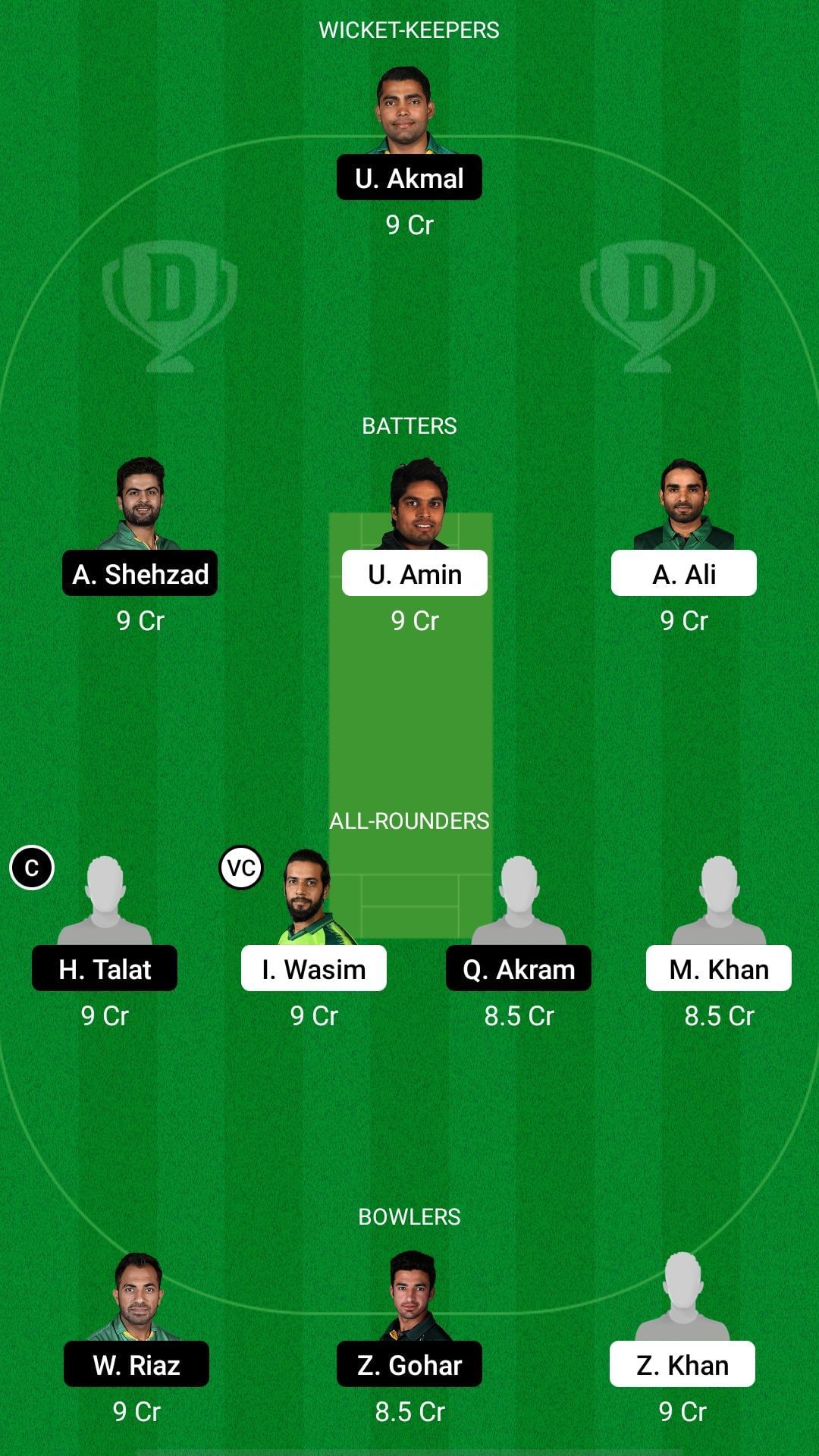 Fantasy Suggestion #2: Umar Akmal, Ahmed Shehzad, Umar Amin, Asif Ali, Hussain Talat, Imad Wasim, Qasim Akram, Mubashir Khan, Wahab Riaz, Zafar Gohar, Zaman Khan.