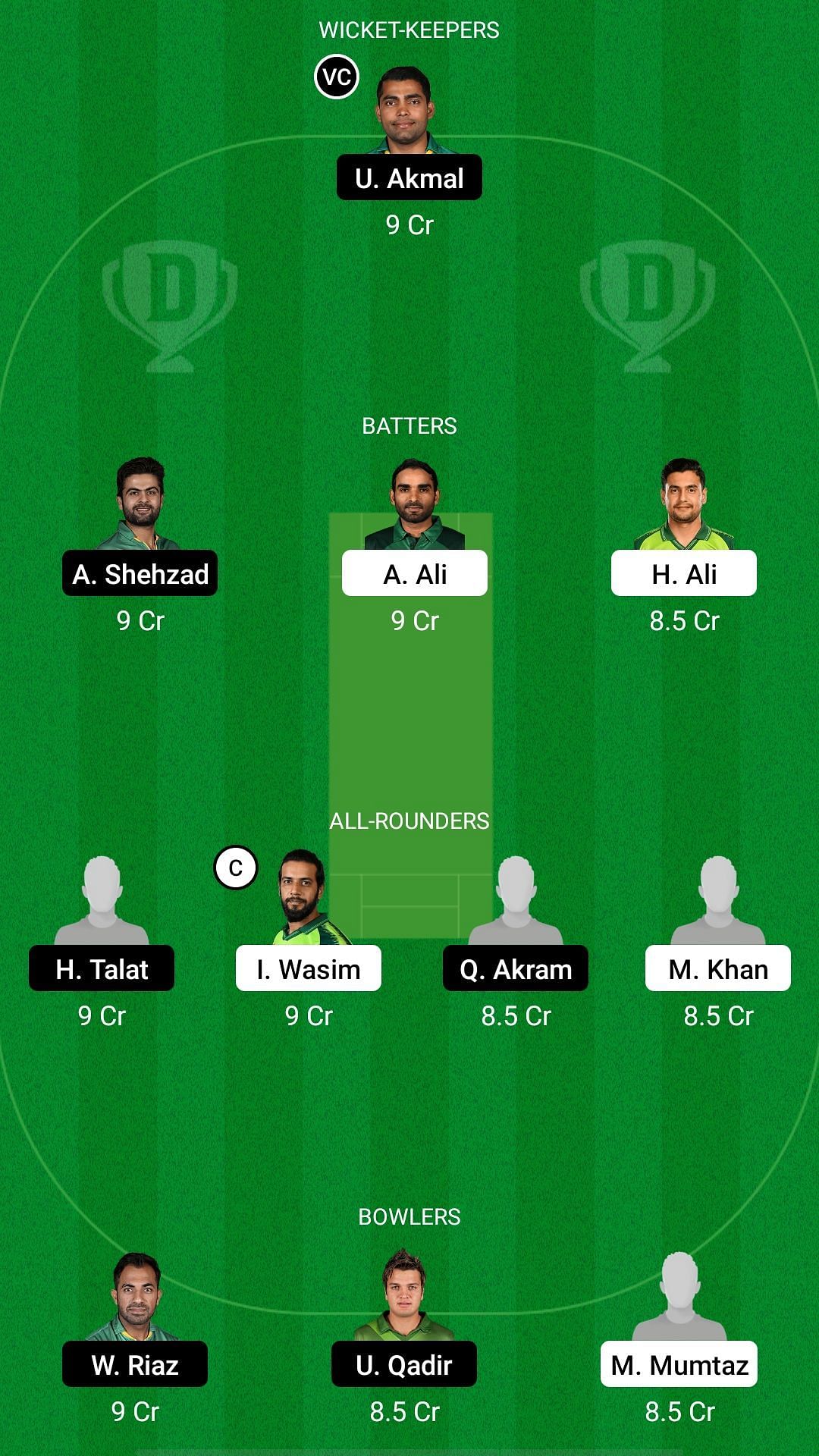 Captain: Imad Wasim. Vice-captain: Umar Akmal.