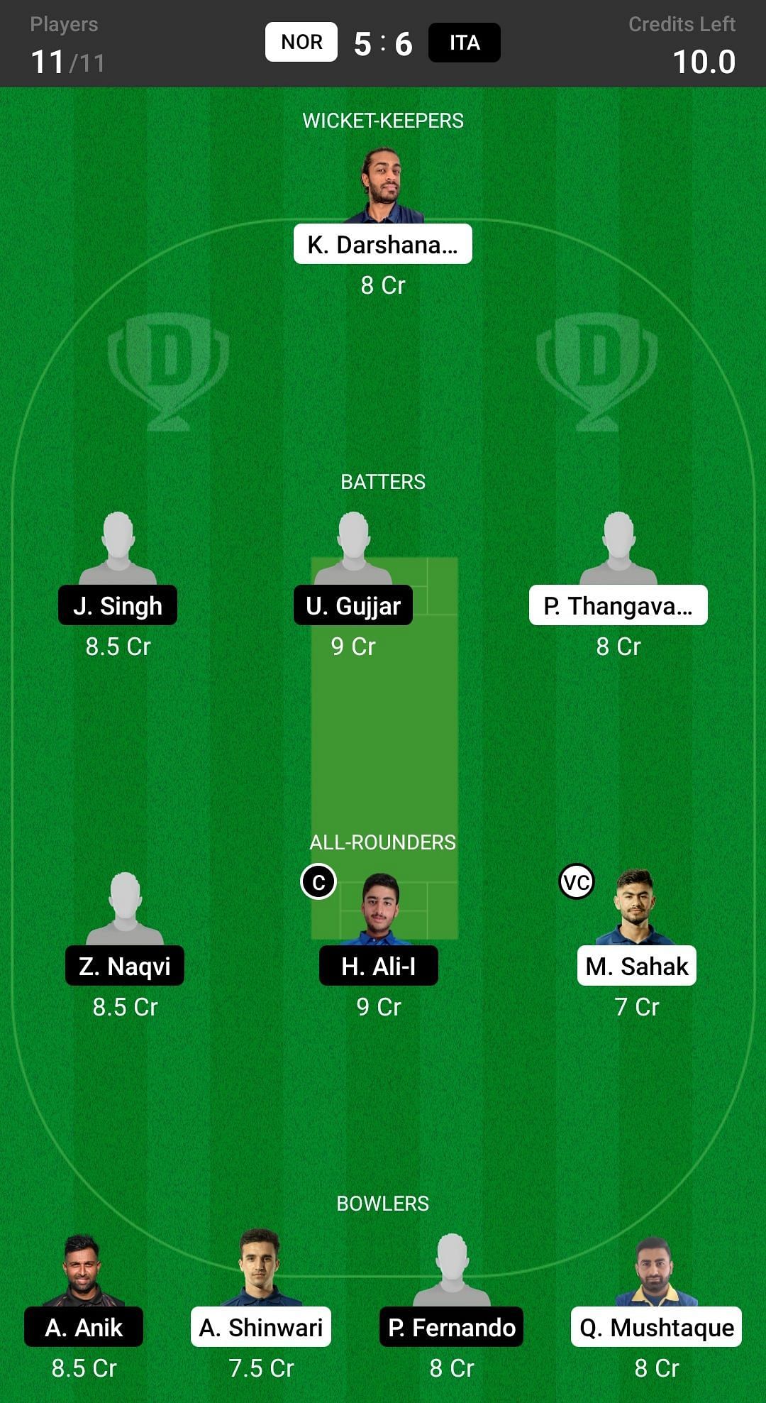 As the pitch is well-balanced with opportunities for both batters and bowlers, you could make H Ali the captain of the grand league teams. He also completes his quota of overs.