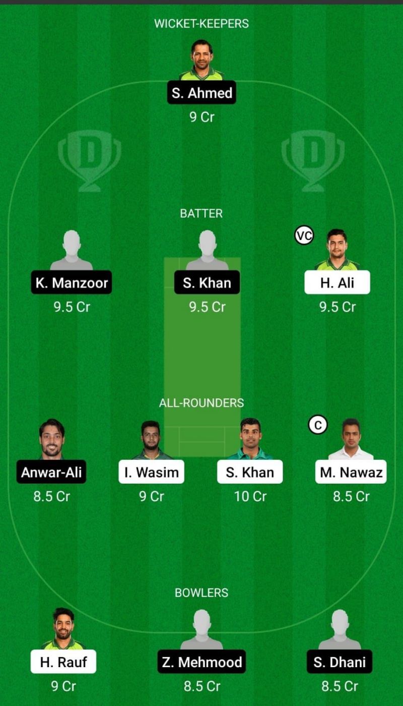 Fantasy Suggestion #2: Sarfaraz Ahmed, Rohail Nazir, Khurram Manzoor, Asif Ali, Haider Ali, Anwar Ali, Saud Shakeel, Mohammad Nawaz, Haris Rauf, Zahid Mehmood, Shahnawaz Dhani.