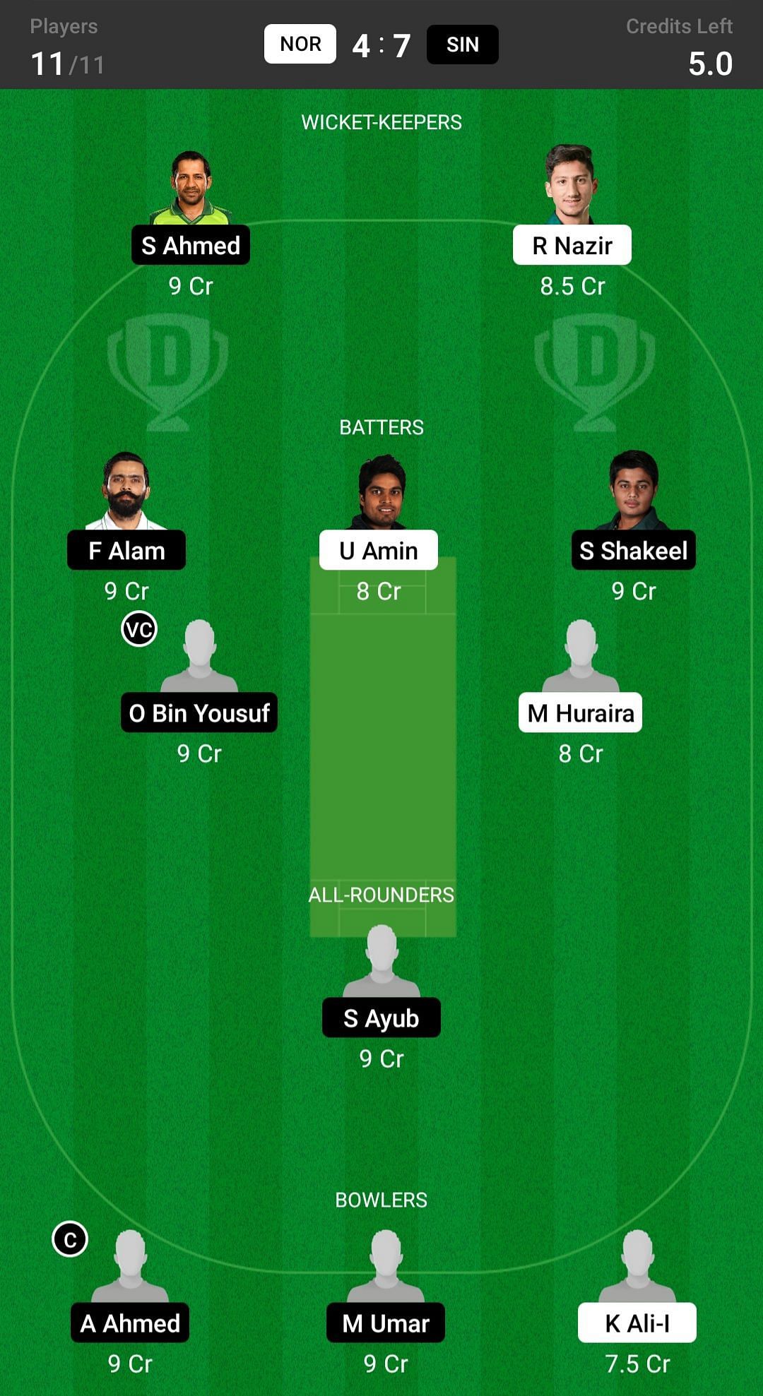 Ahmed, who has played well in the last few games, is the best wicketkeeper pick. He could earn additional points from catches and stumpings. R Nazir is another good pick.