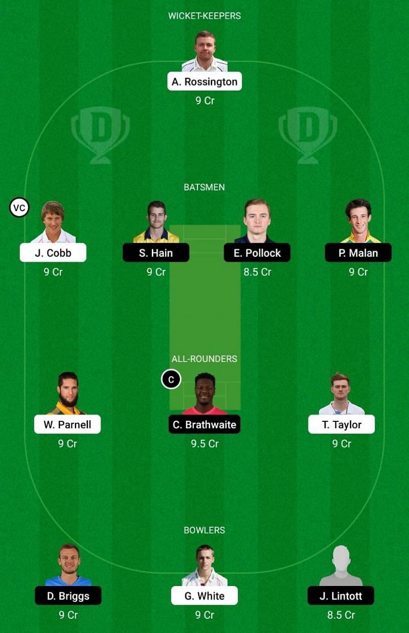 Fantasy Suggestion #1: Adam Rossington, Joshua Cobb, Sam Hain, Ed Pollock, Peter Malan, Wayne Parnell, Carlos Brathwaite, Tom Taylor, Danny Briggs, Graeme While, Jacob Lintott